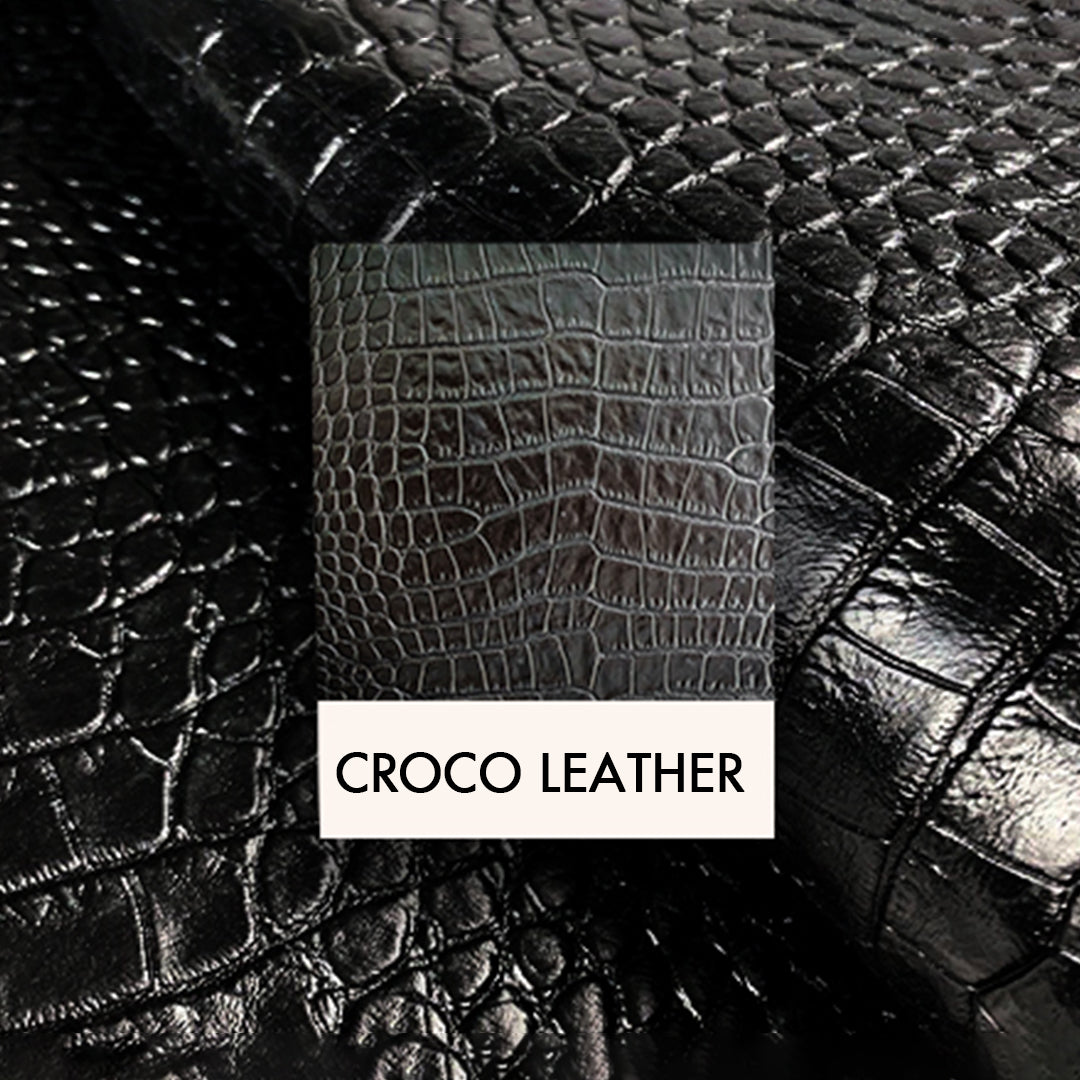 Croco texture leather for footwear showcases an eye-catching embossed pattern that adds depth and sophistication. The rich, textured finish not only elevates the style but also improves the durability and wear-resistance of the shoes, making them both fashionable and long-lasting. Its luxurious look makes it an ideal choice for those seeking high-end, statement-making footwear.