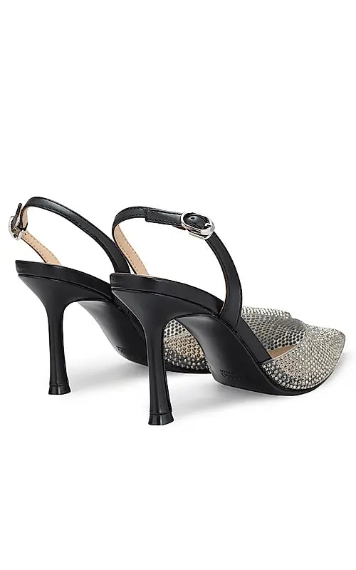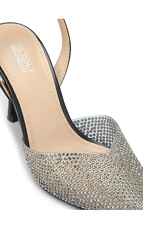 Black Rhinestones Embellished Pointed Toe Heels