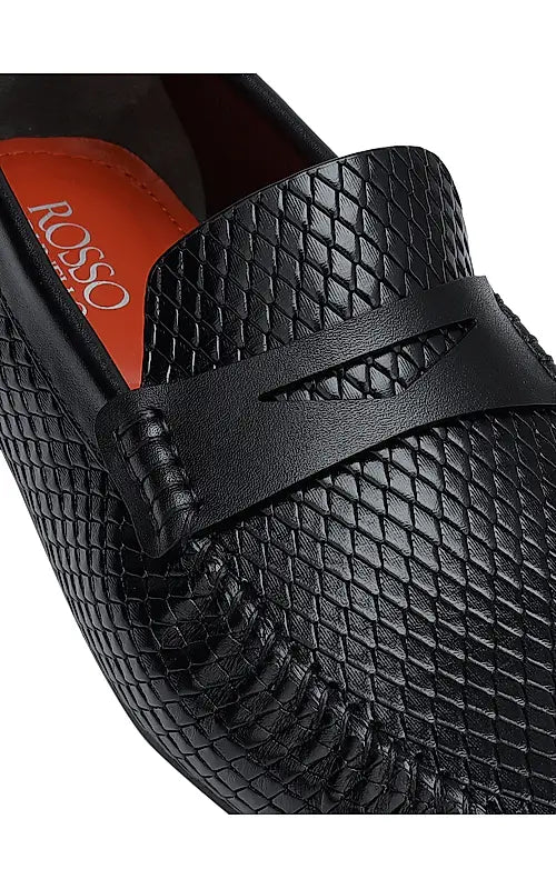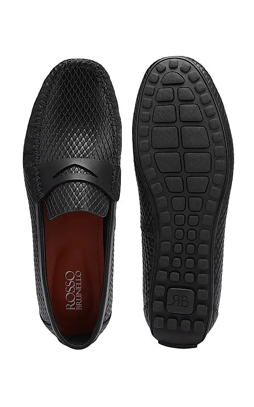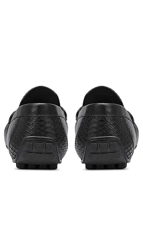 Black Textured Leather Moccasins