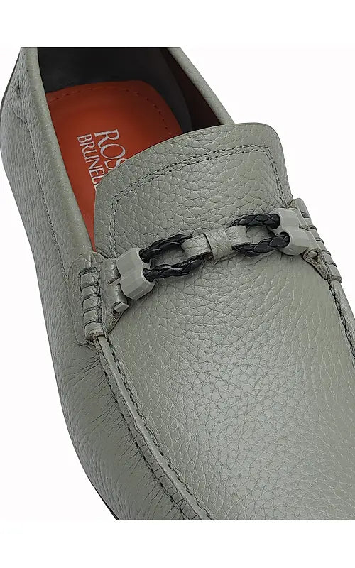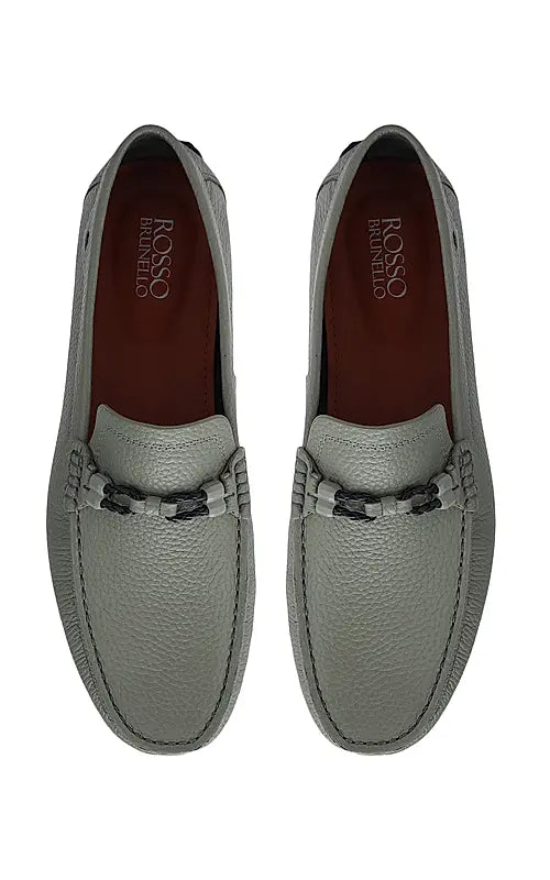 Grey Moccasins With Braided Panel On Top