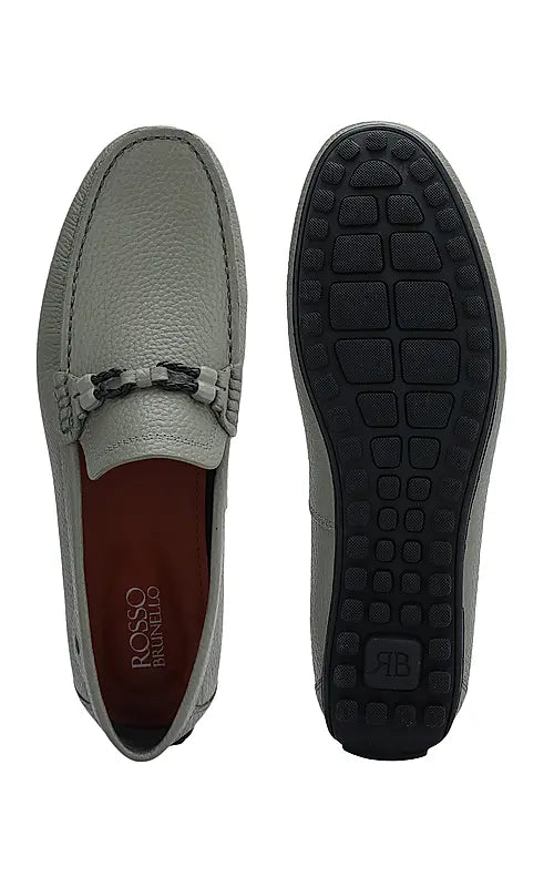 Step into style and comfort with these men's moccasins crafted from genuine textured leather. Featuring a unique braided panel on top, they offer a refined look perfect for party wear. Designed for all-day comfort, these moccasins elevate your footwear collection.