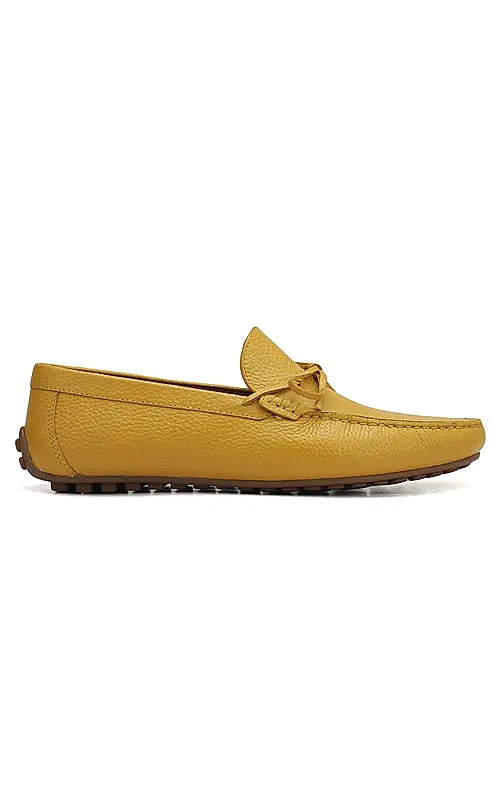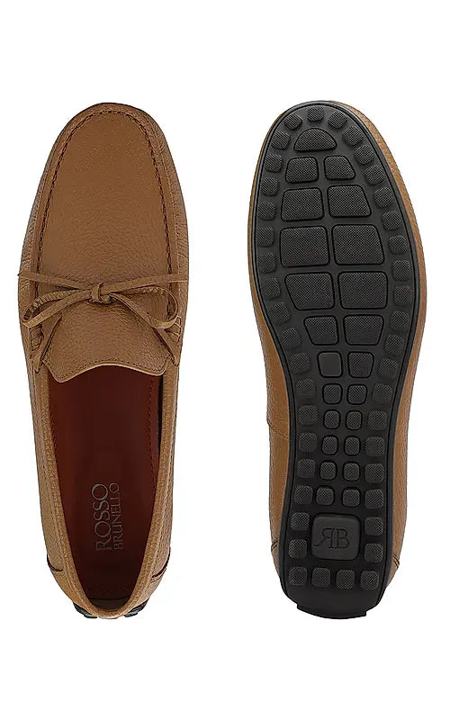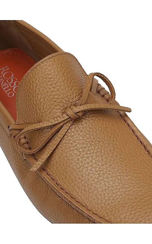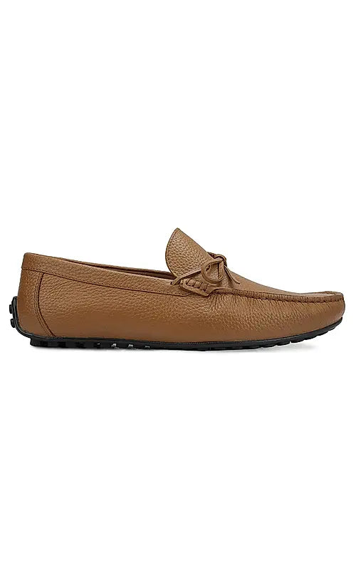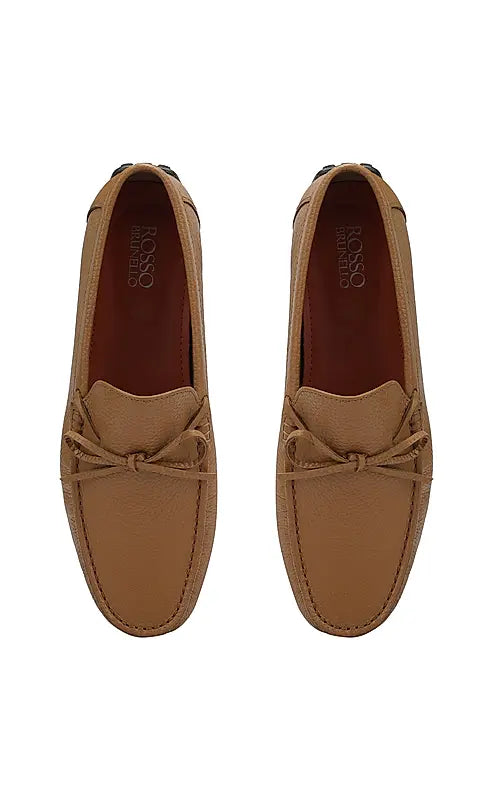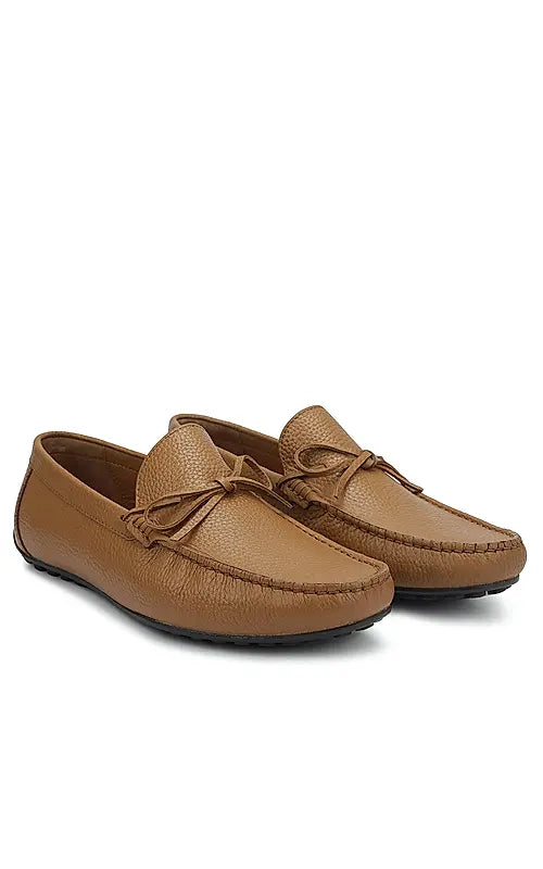 Elevate your style with these tan leather moccasins for men, featuring a subtle bow detail. Designed for comfort and a refined look, they're perfect for both casual and semi-formal occasions. Enjoy effortless sophistication and ease with every wear.