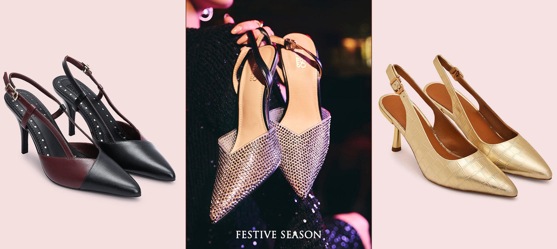 • Burgundy & Black Slingback Heels