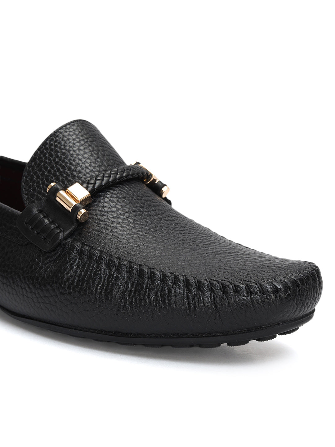 Made with genuine leather, these moccasins feature a braided panel on top for a stylish edge. The cushioned insole offers all-day comfort without compromising on appeal. Perfect for both party looks and casual outings, they pair effortlessly with any wardrobe.