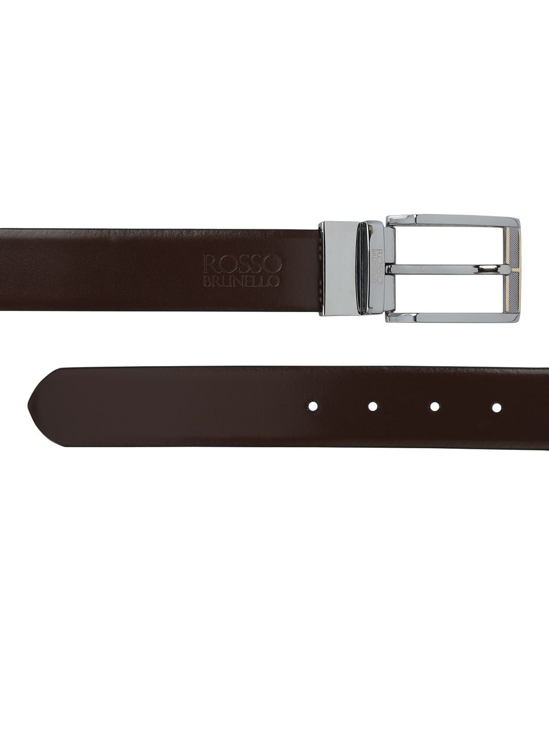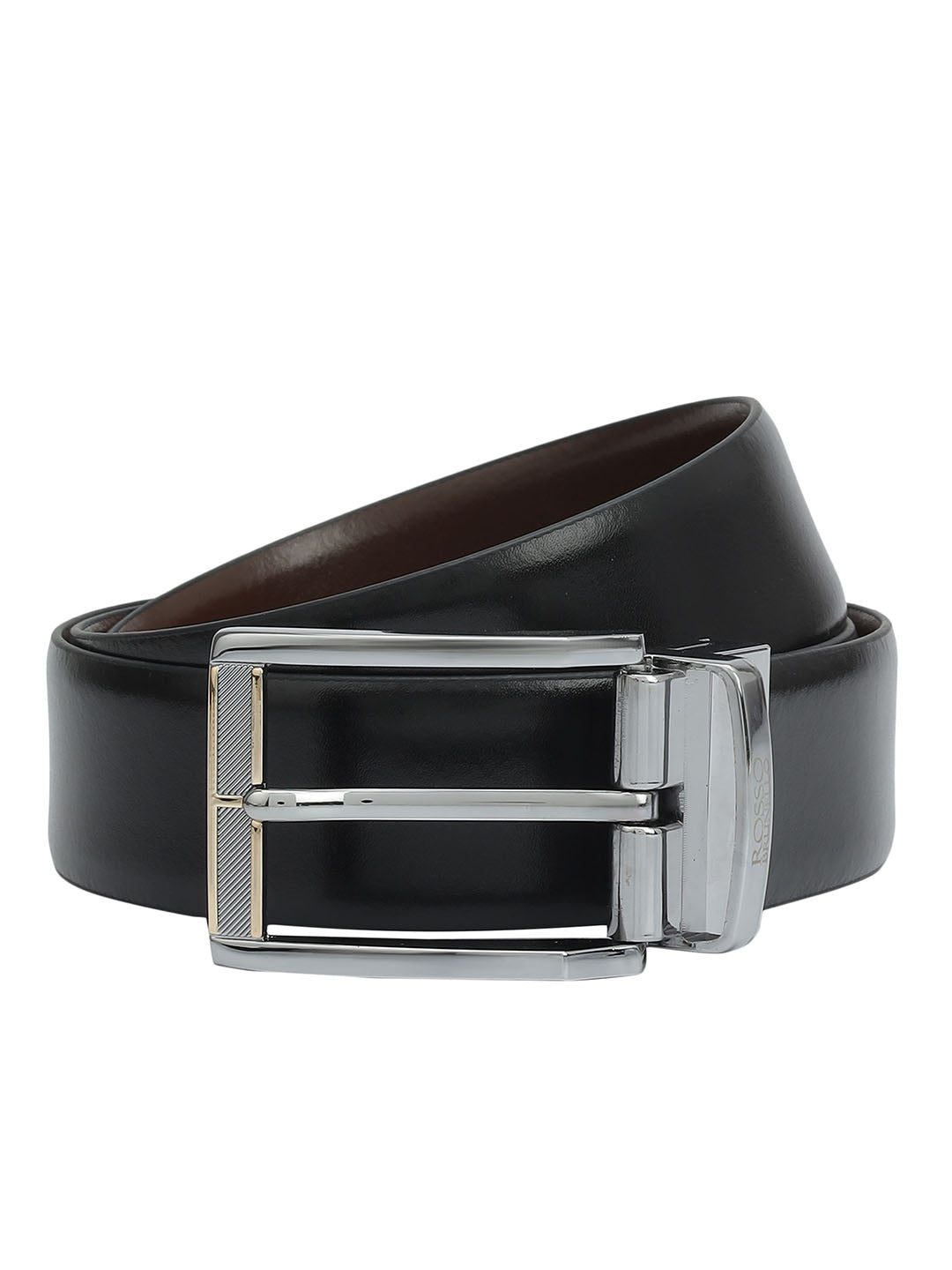 This reversible men's belt is made from high-quality genuine plain leather, providing a sophisticated look. Its versatile design offers both classic and modern styles, perfect for formal occasions. A durable, stylish accessory that completes any professional wardrobe.