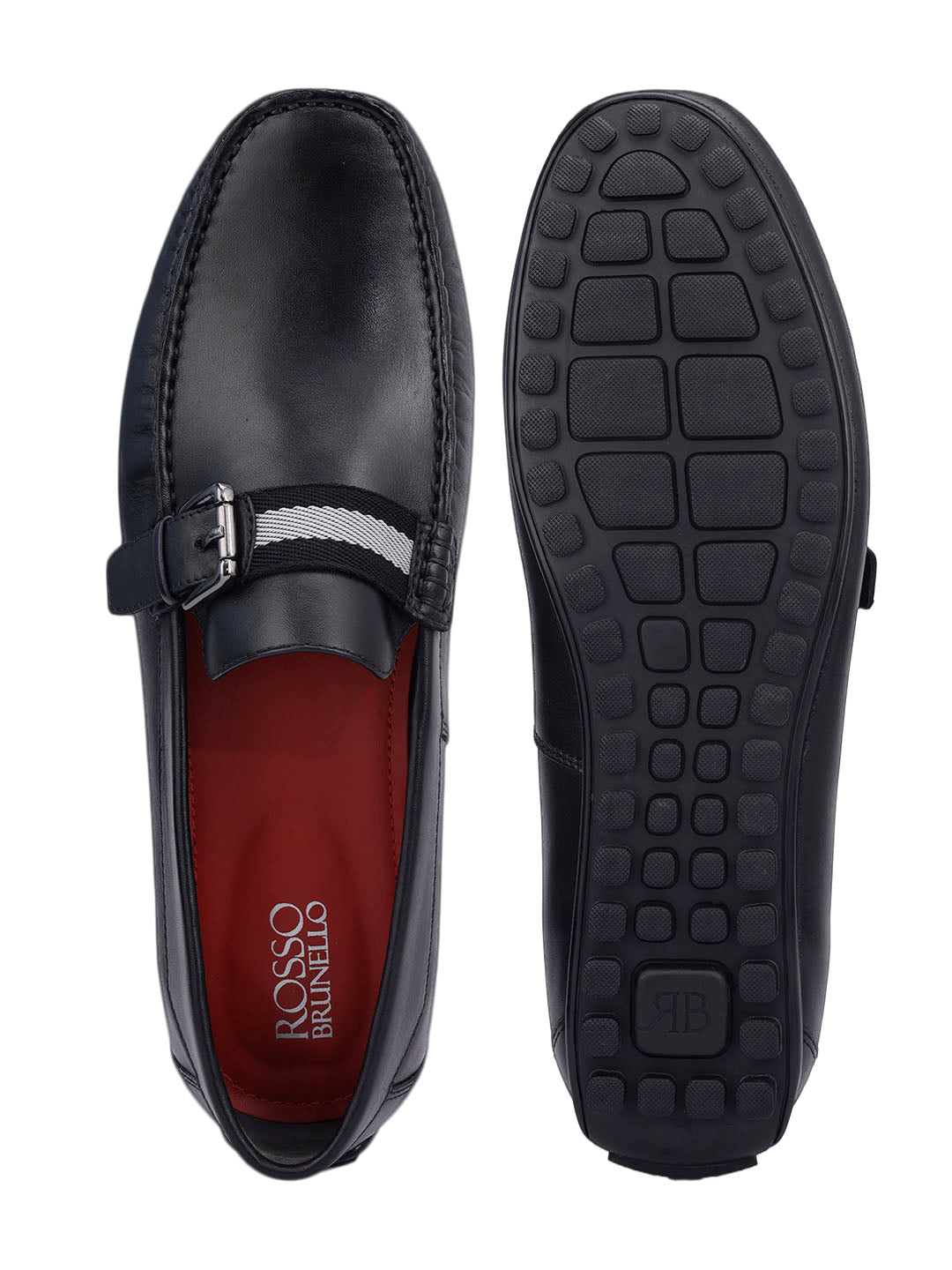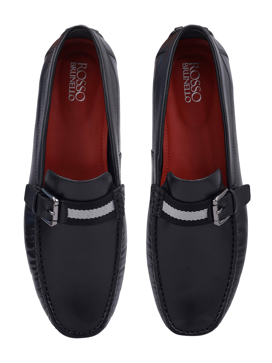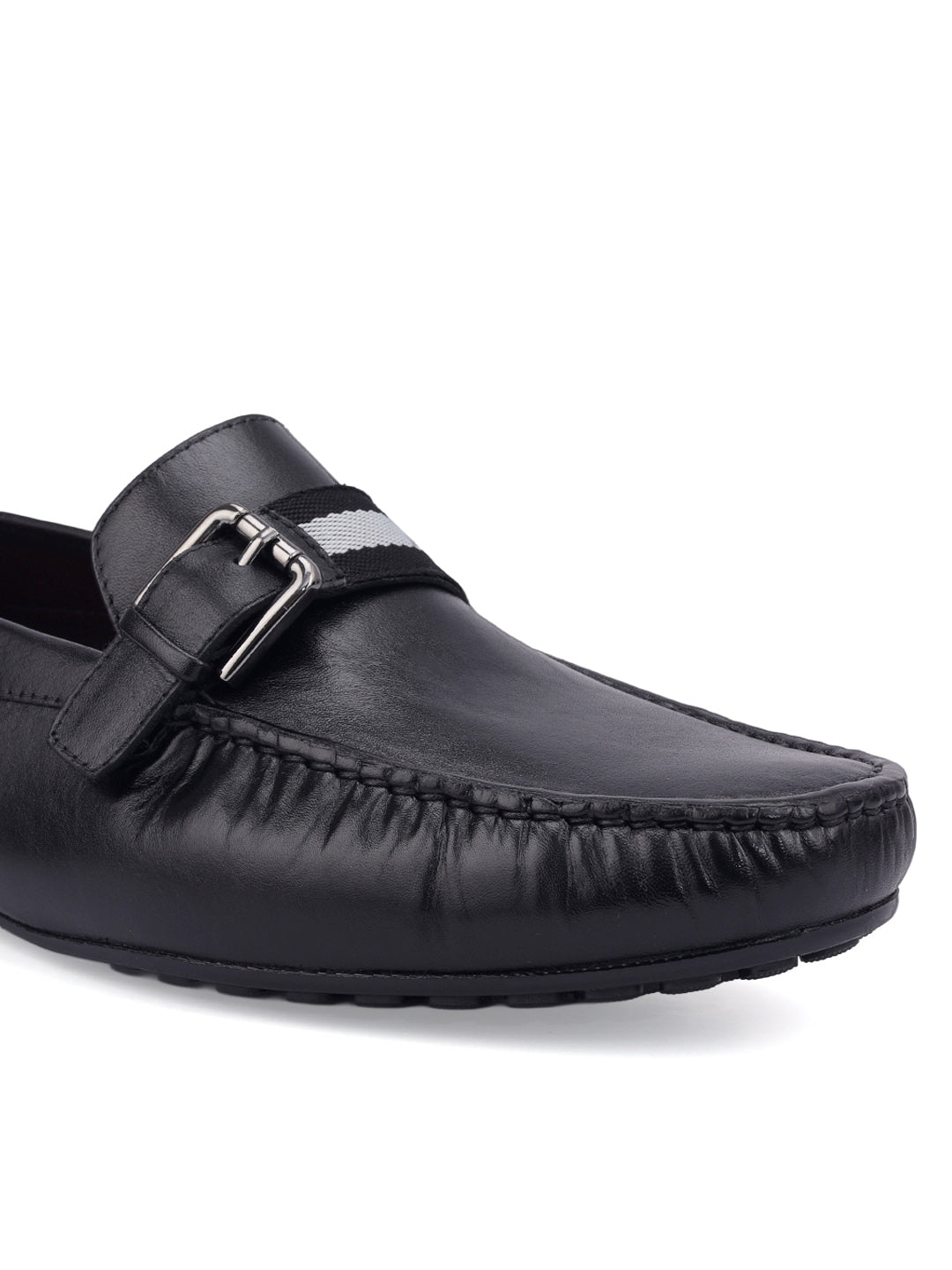 A polished buckle and subtle stripe detail give these moccasins a premium edge. The design ensures a comfortable fit while transitioning easily from casual plans to party settings. Stylish yet effortless, they elevate any look with luxury.