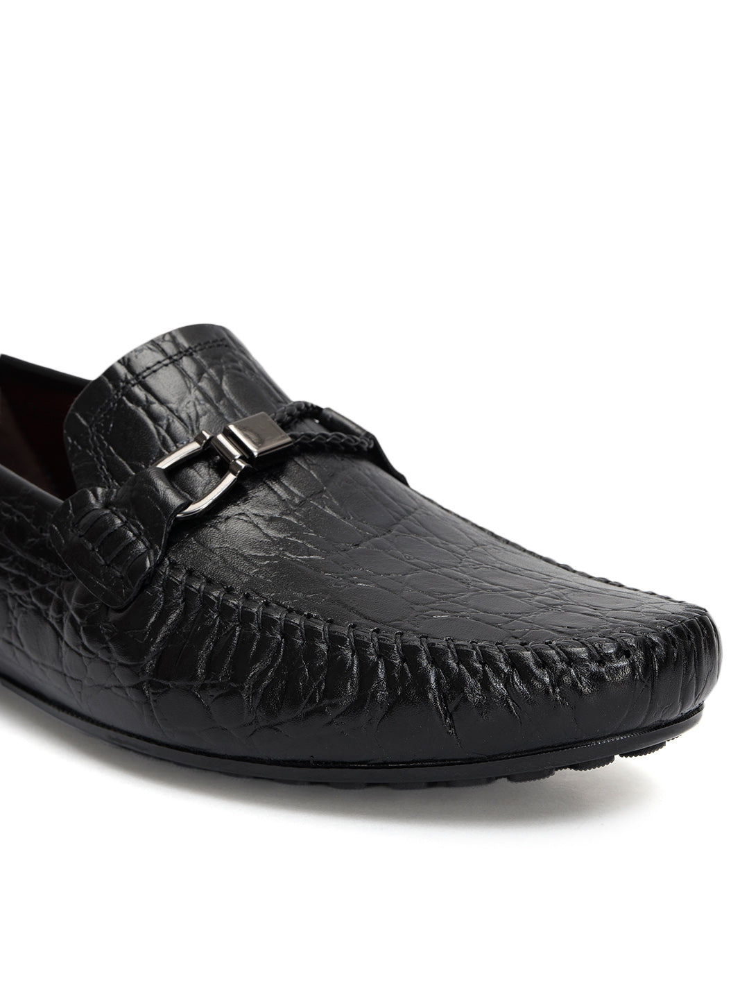 Crafted from genuine leather, these men’s moccasins feature a stylish croco texture with a braided panel on top. Designed for comfort, they are perfect for parties or casual outings. A versatile and refined choice to elevate your look effortlessly.