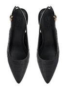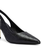 Black Croco Textured Slingback Heels