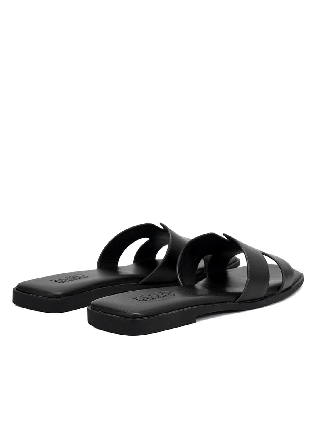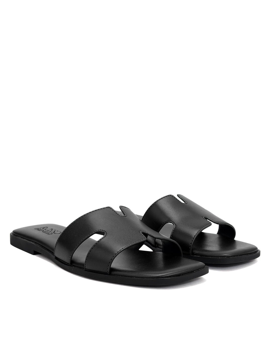 Ladies flats in plain leather with a curvy strap design offer both style and comfort. The open-toe feature makes them perfect for casual, warm-weather days. Crafted for all-day wear, they provide a chic and laid-back look.