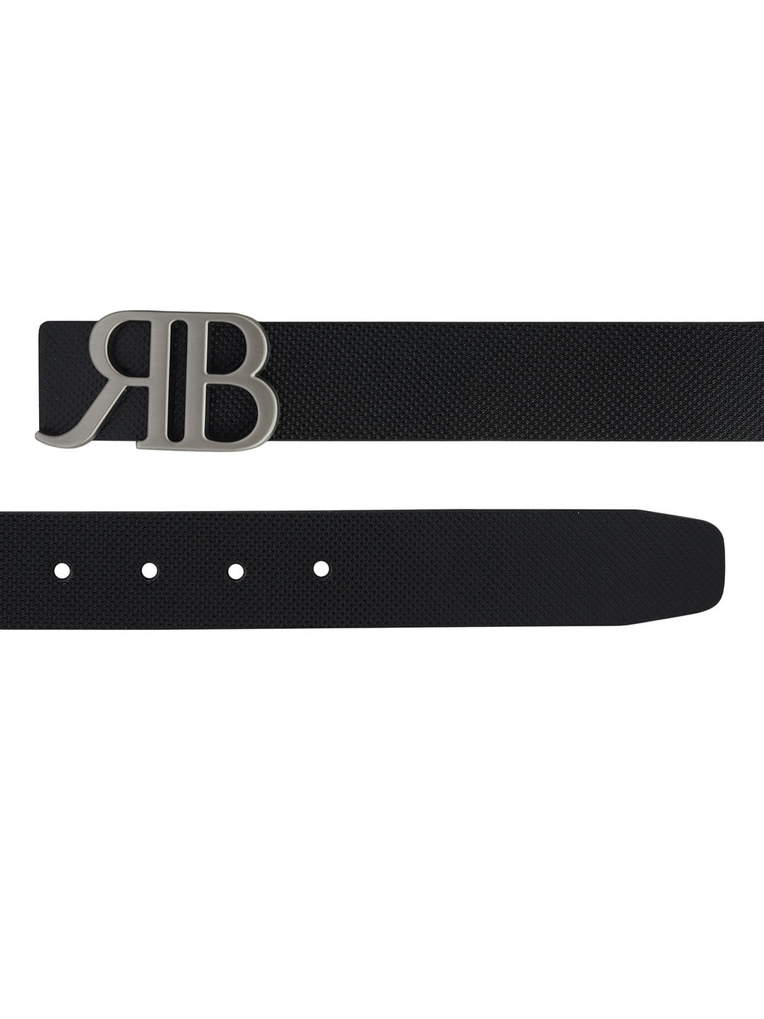 This men's belt is crafted from genuine leather and features a sleek logo buckle. Its formal design makes it a versatile accessory for any stylish outfit, a timeless piece for the modern man.