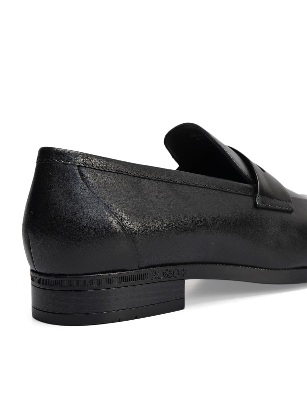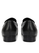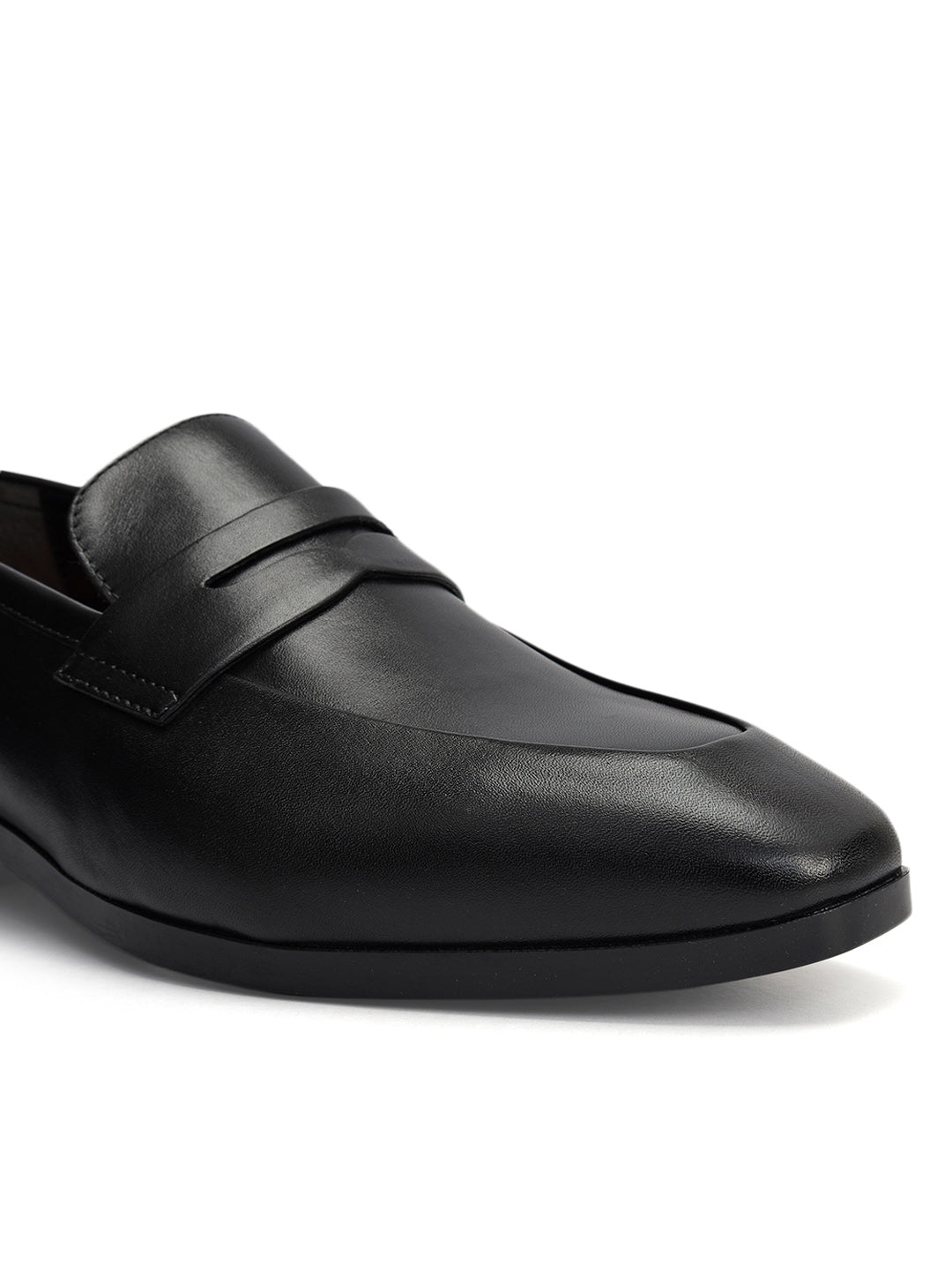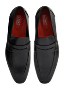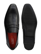 Crafted from genuine leather, these black loafers feature a refined top panel that adds subtle structure. Designed for formal wear, they offer a sleek silhouette suited to work and occasion dressing. A cushioned footbed provides lasting comfort throughout the day.