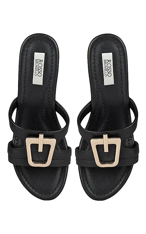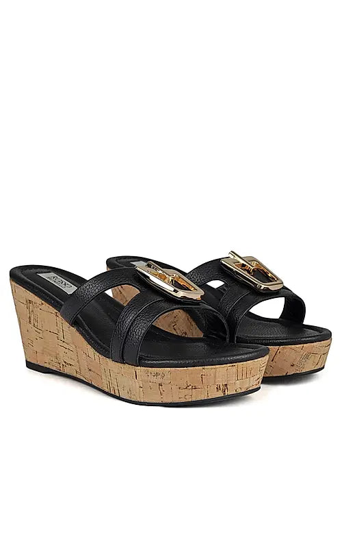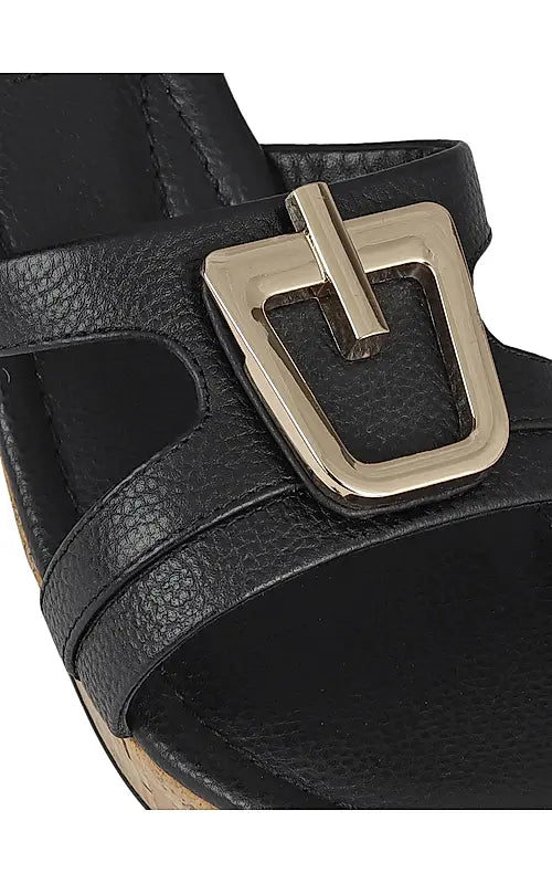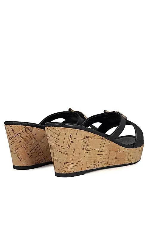 Discover elegance and comfort with our ladies' wedge heels. Featuring a stylish gold buckle atop for a touch of sophistication. Walk with confidence in every step.