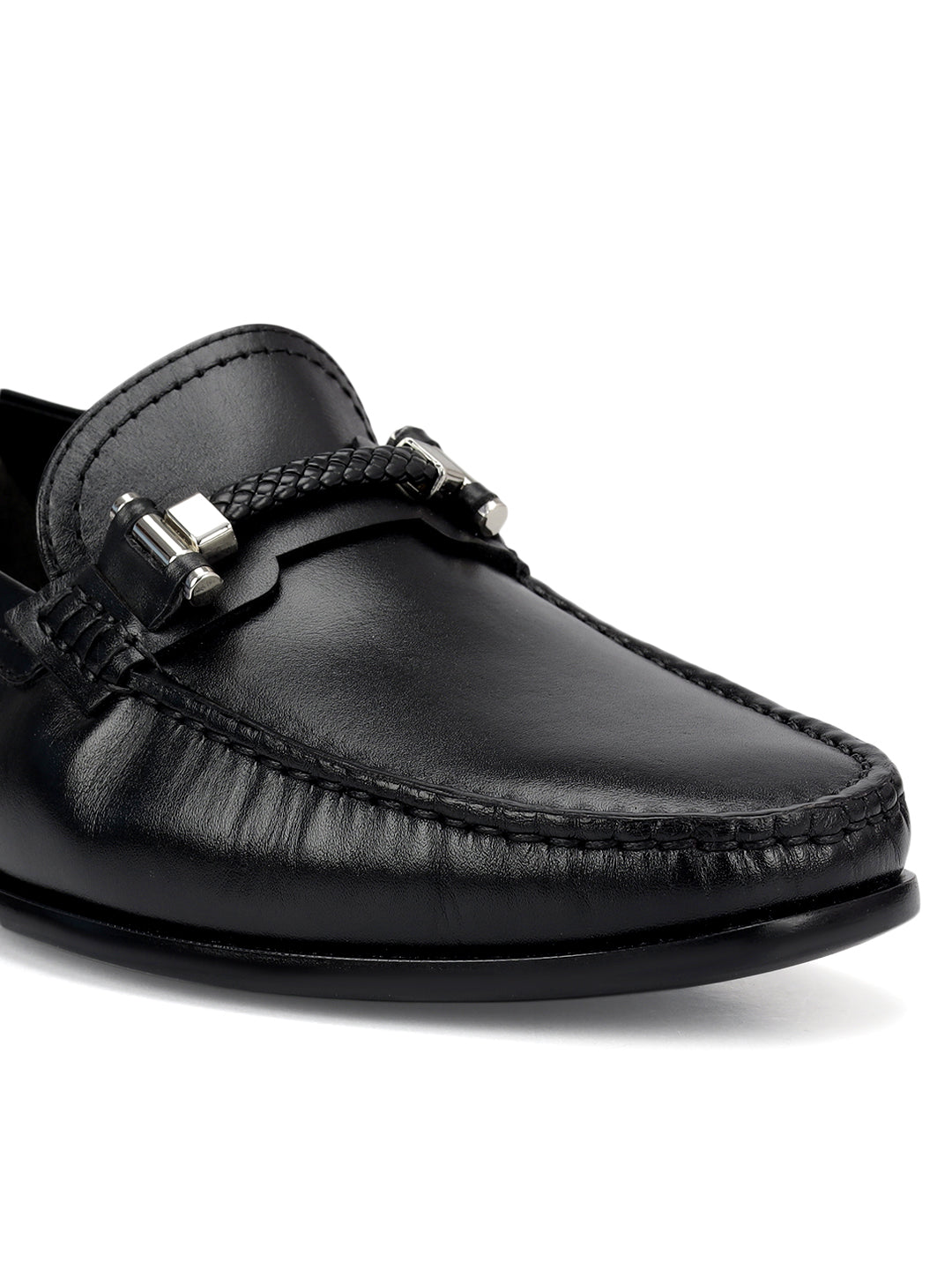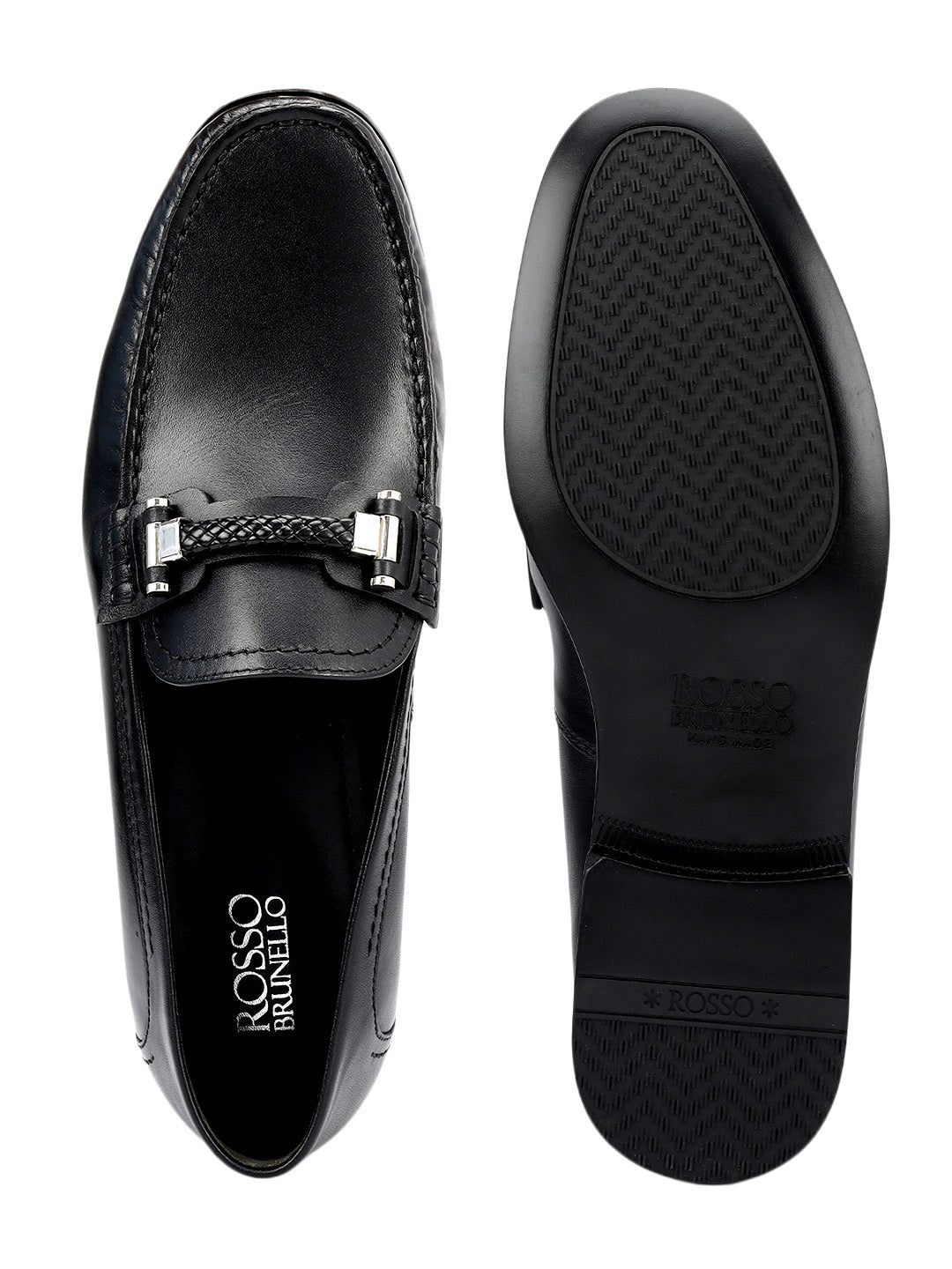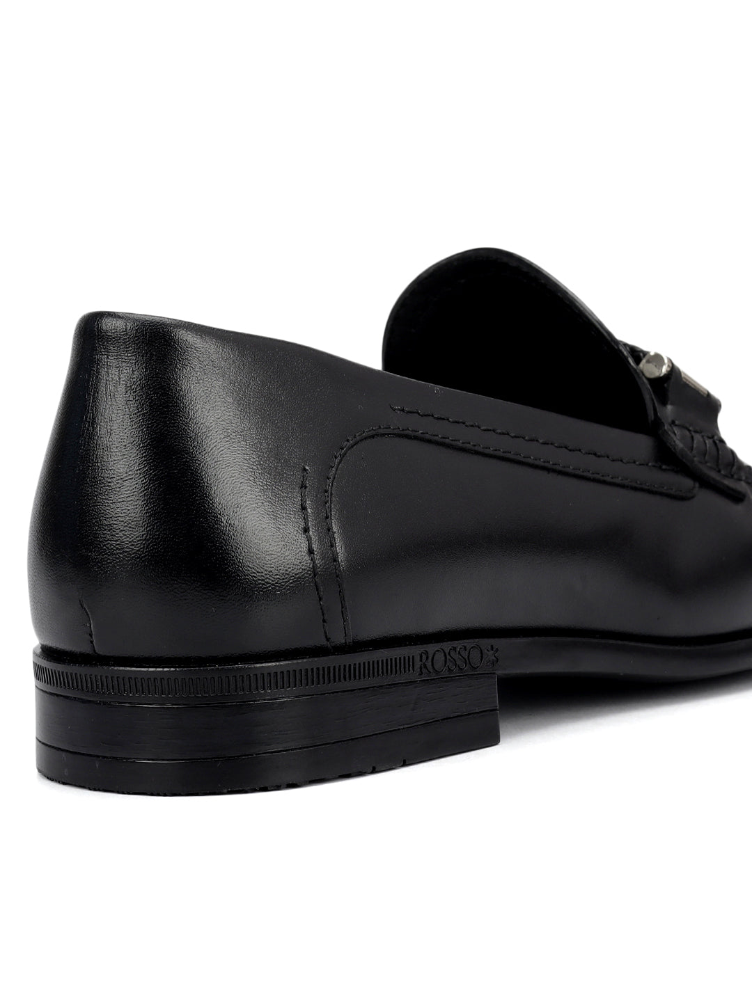 Step into refined style with these men’s loafers, crafted from smooth plain leather and finished with a distinctive braided panel on top. Perfect for formal settings, they offer a clean, polished look with subtle detail. Designed for comfort, they provide lasting ease from morning meetings to evening events.
