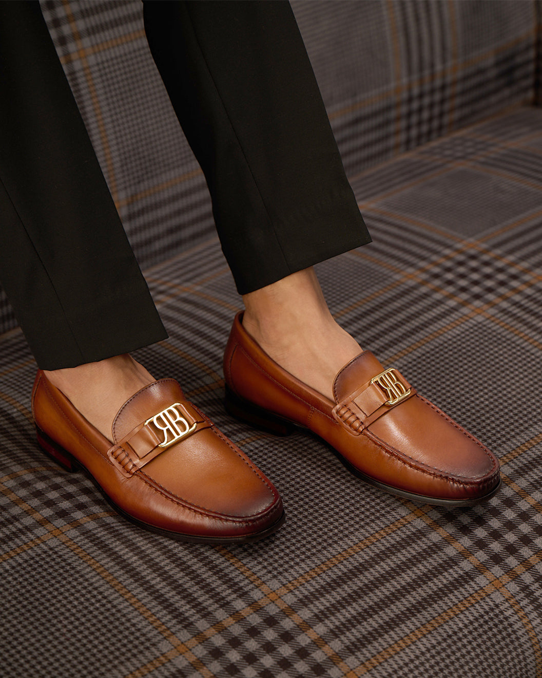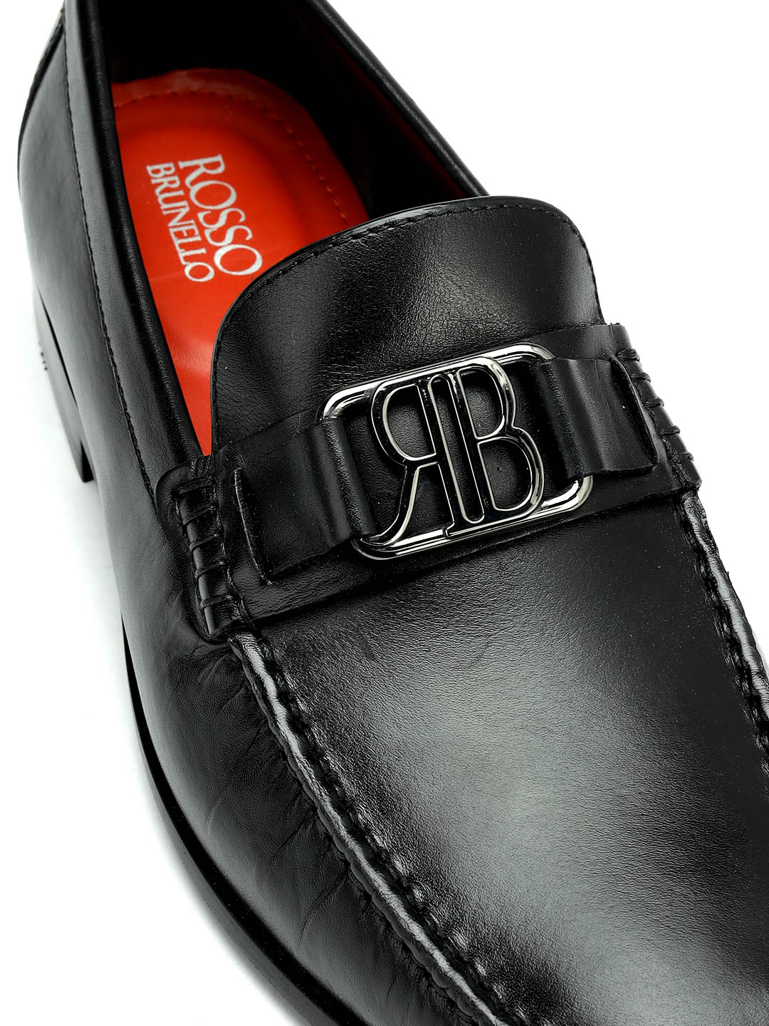 Crafted from smooth, plain leather, these men’s loafers feature a stylish logo buckle. Perfect for formal occasions, they offer a refined look and exceptional comfort, making them a must-have for any wardrobe.