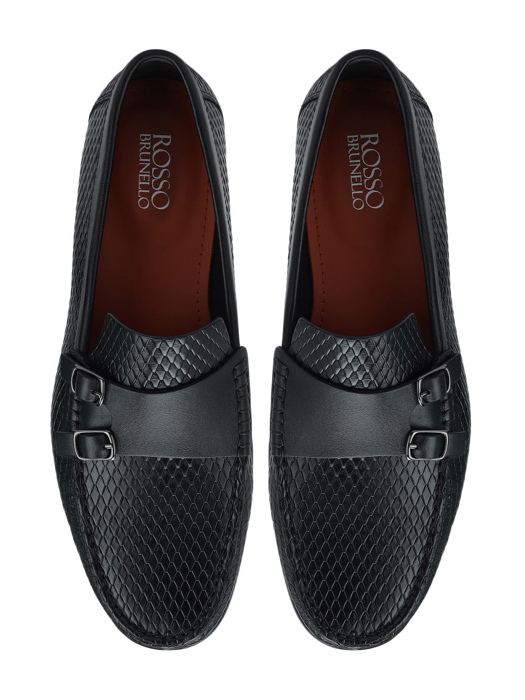 Step into sophistication with these monk strap moccasins for men. Crafted from textured leather, they combine a distinctive strap design with exceptional comfort. Perfect for adding a touch of elegance to both casual and formal outfits, these shoes provide a stylish and refined option for any wardrobe.
