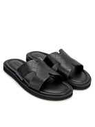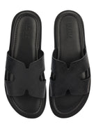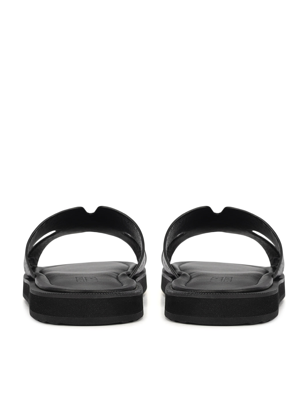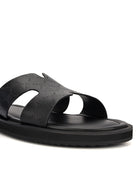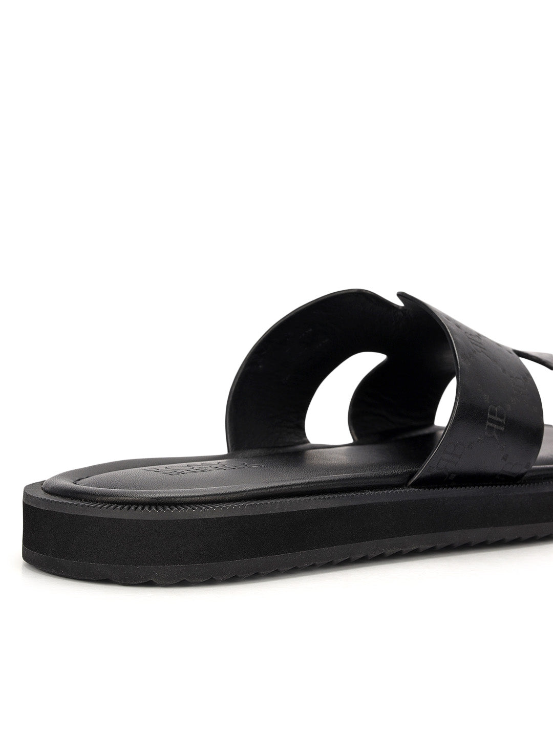 Crafted in premium leather with signature monogram detailing, these slides feature a bold cutout panel design for a modern edge. The sleek silhouette makes them perfect for smart casual styling. Designed with a cushioned footbed and sturdy sole, they ensure lasting comfort with every step.
