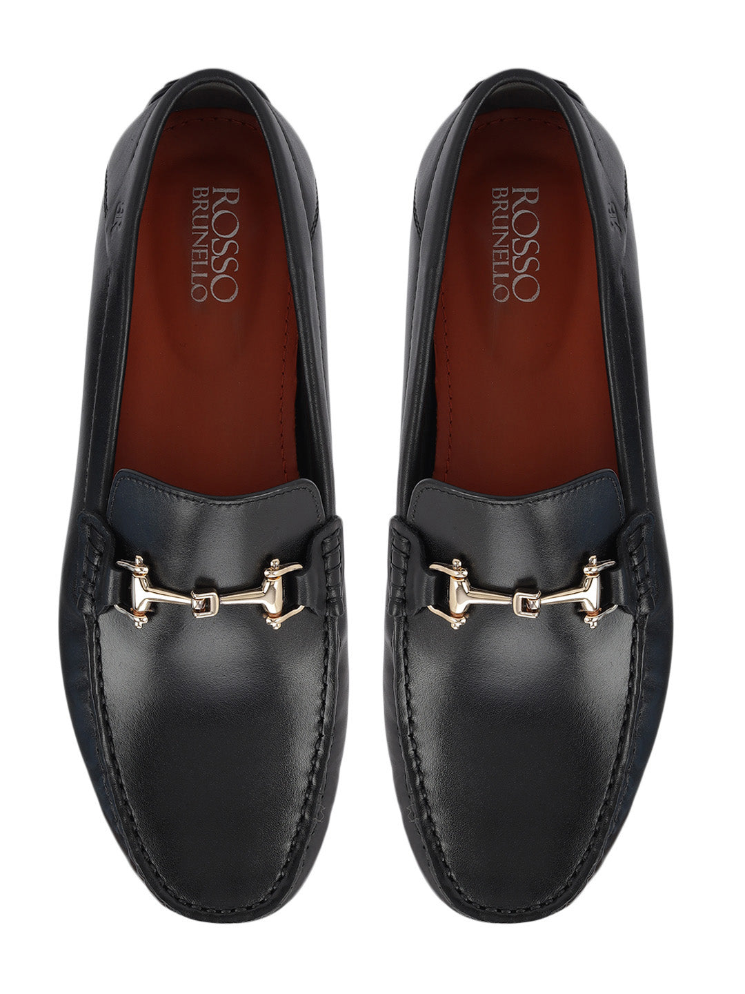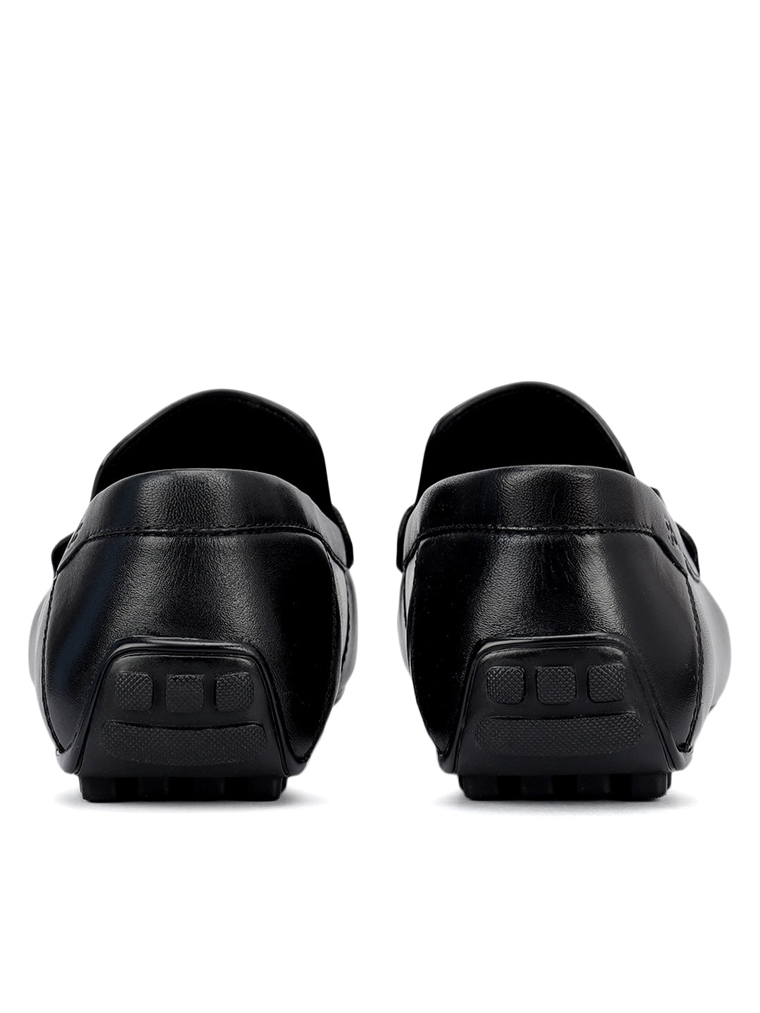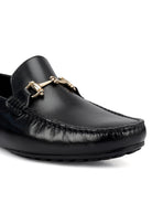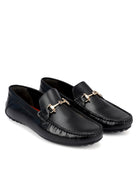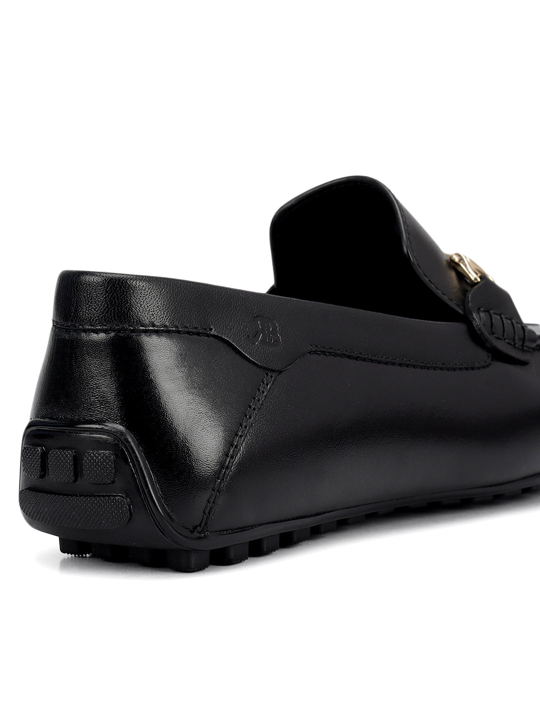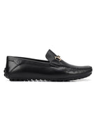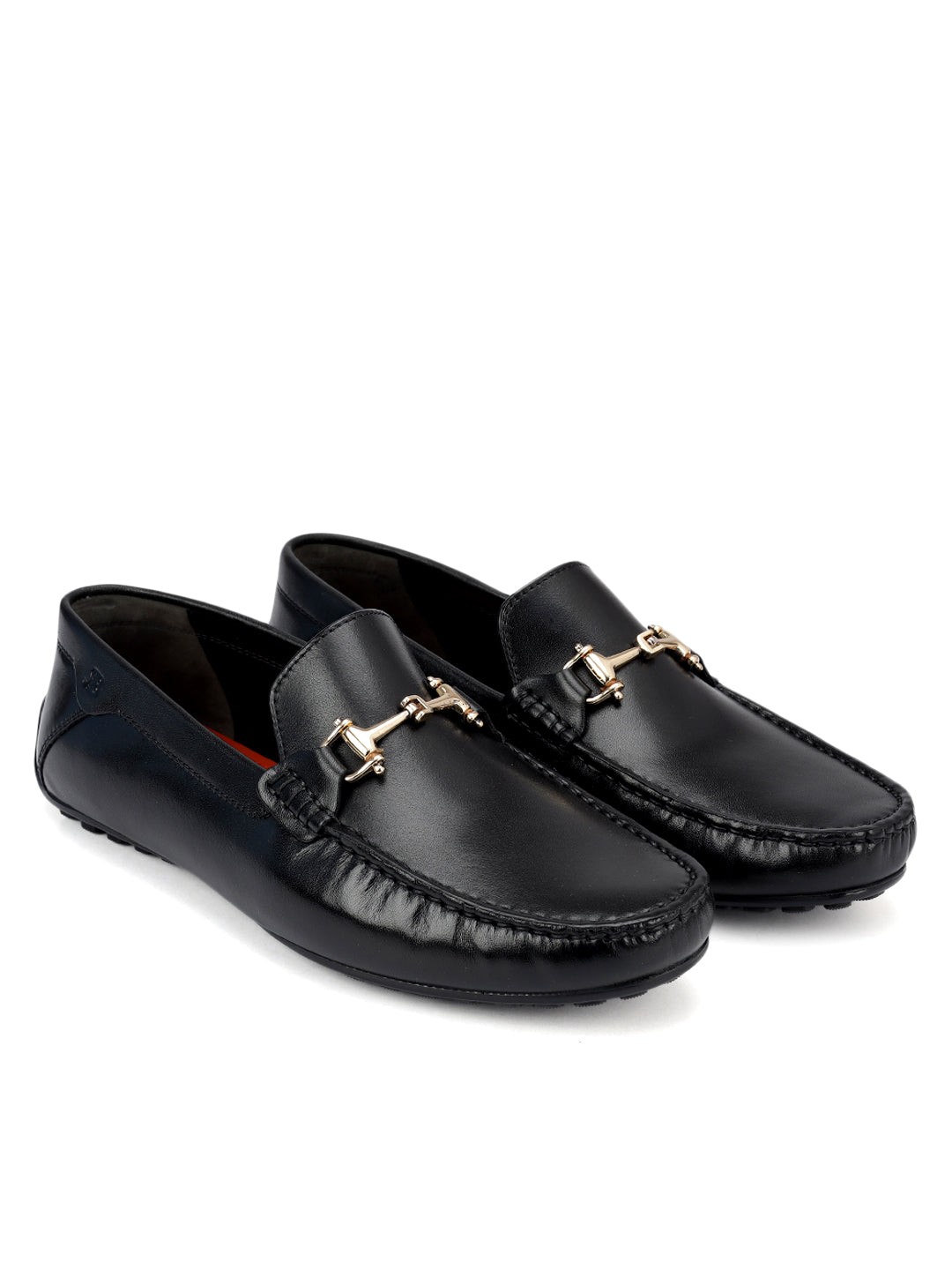 Step out in style with these men's moccasins, crafted from smooth plain leather and accented with a sleek metal buckle on top. Perfect for party wear, they strike the right balance between elegance and edge. Designed for comfort, they offer a snug fit and effortless wear all night long.