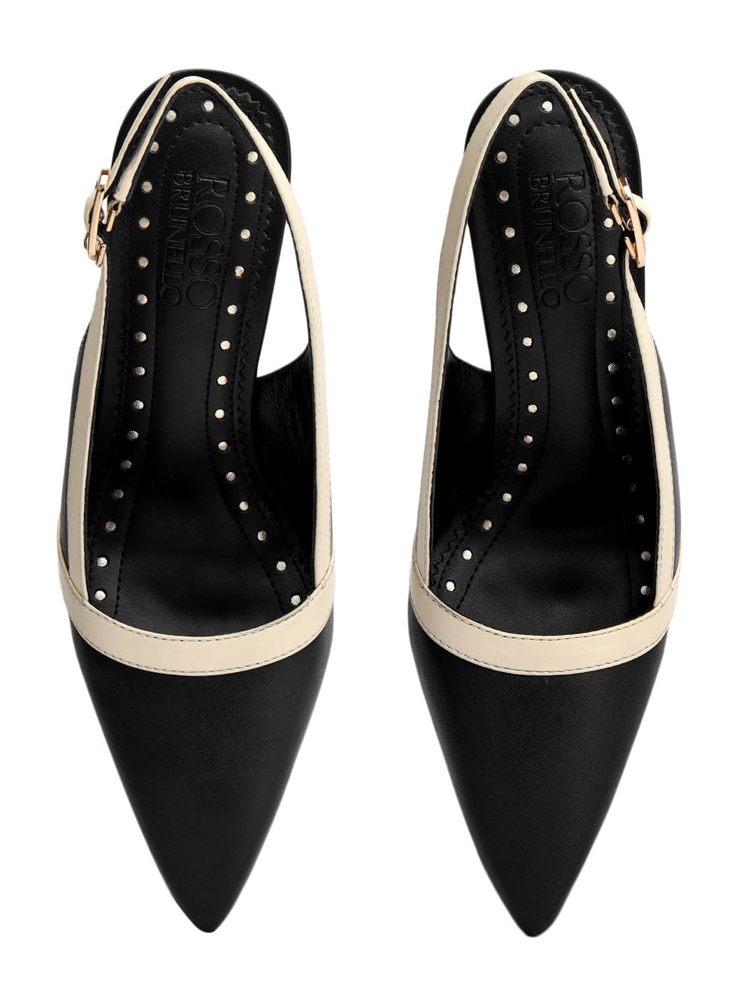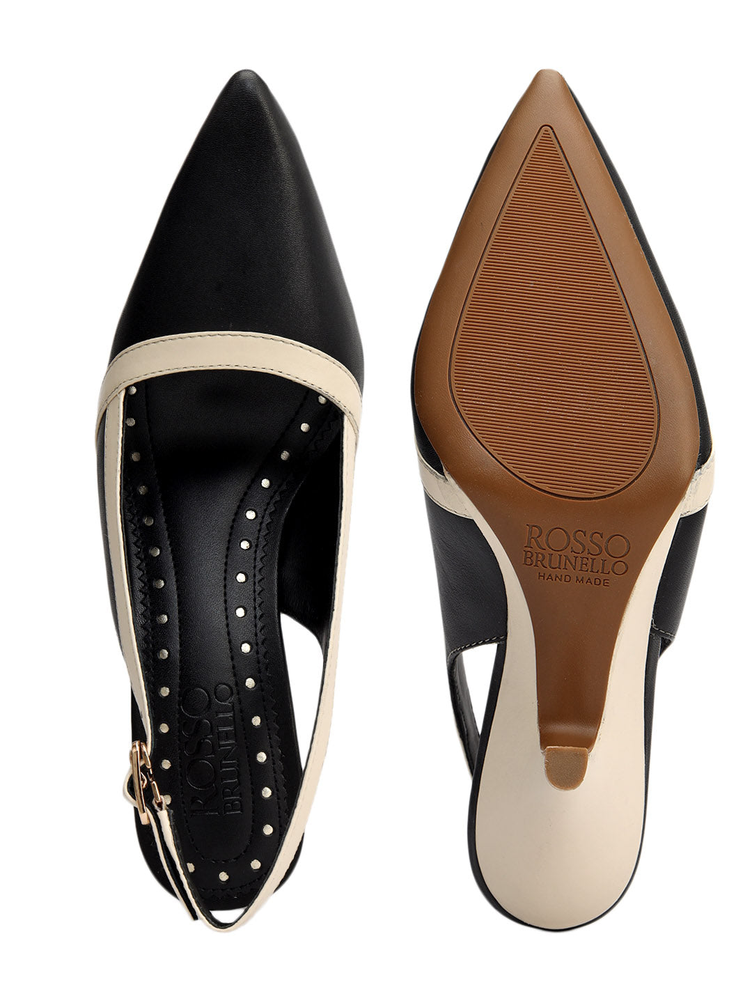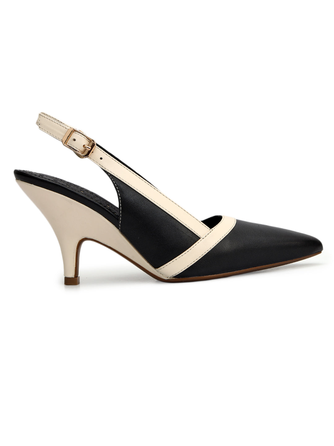 Step out in style with these black slingback heels, designed with a striking contrast trim for a modern touch. Perfectly balanced for formal occasions, they combine elegance with all-day comfort. Whether it’s a business meeting or a festive gathering, these heels ensure you stay confident and chic. A must-have addition to any wardrobe that values both style and ease.