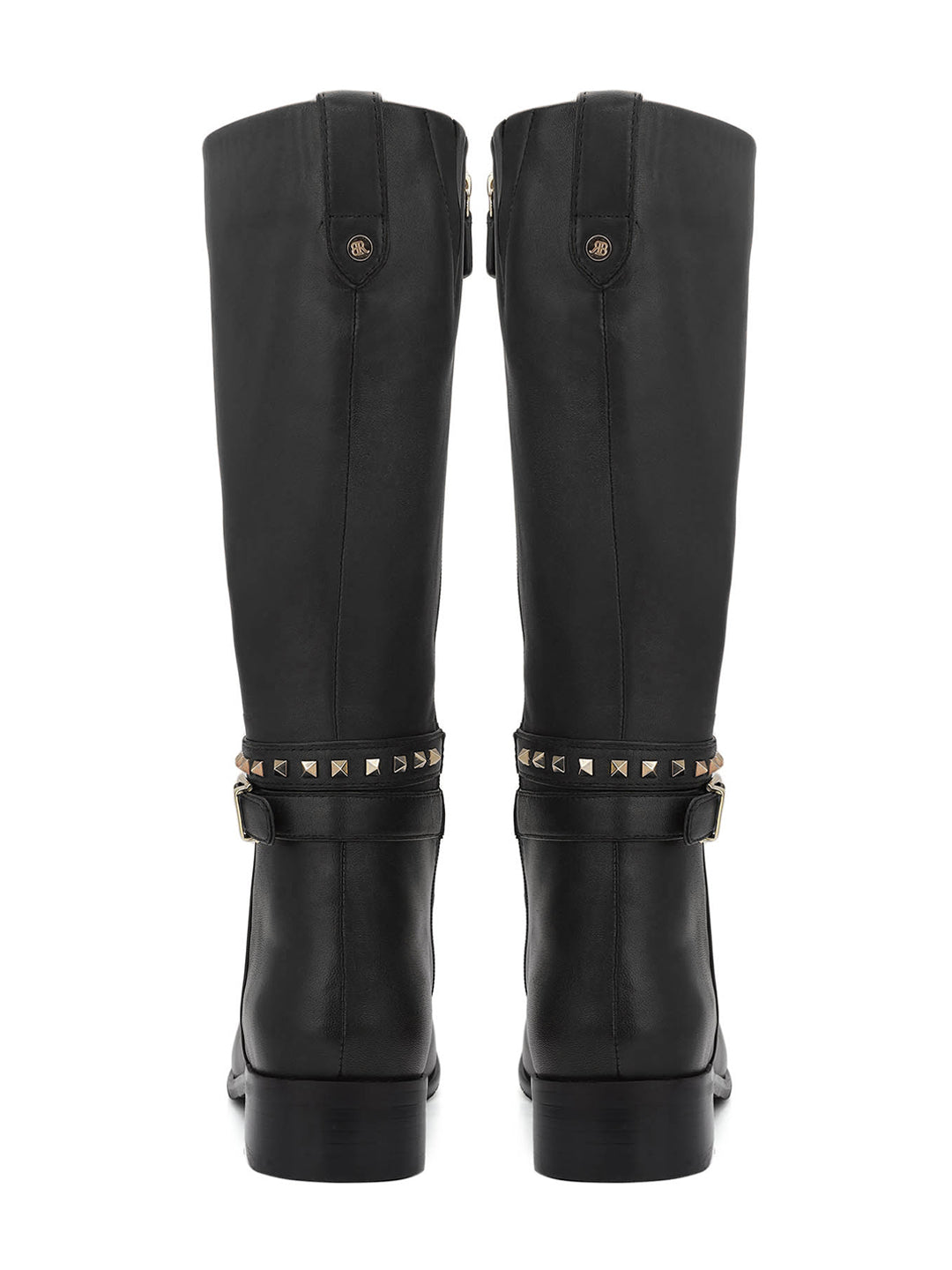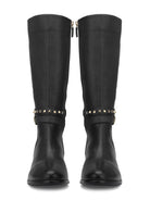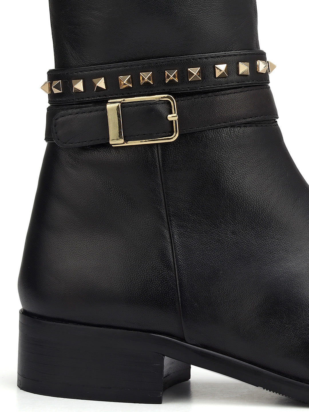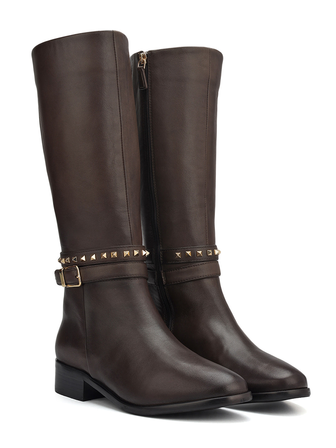 Step into sophistication with our ladies' boots, adorned with elegant gold studs. Perfect for formal occasions, these boots offer both style and comfort. Make a statement while staying at ease all day long.
