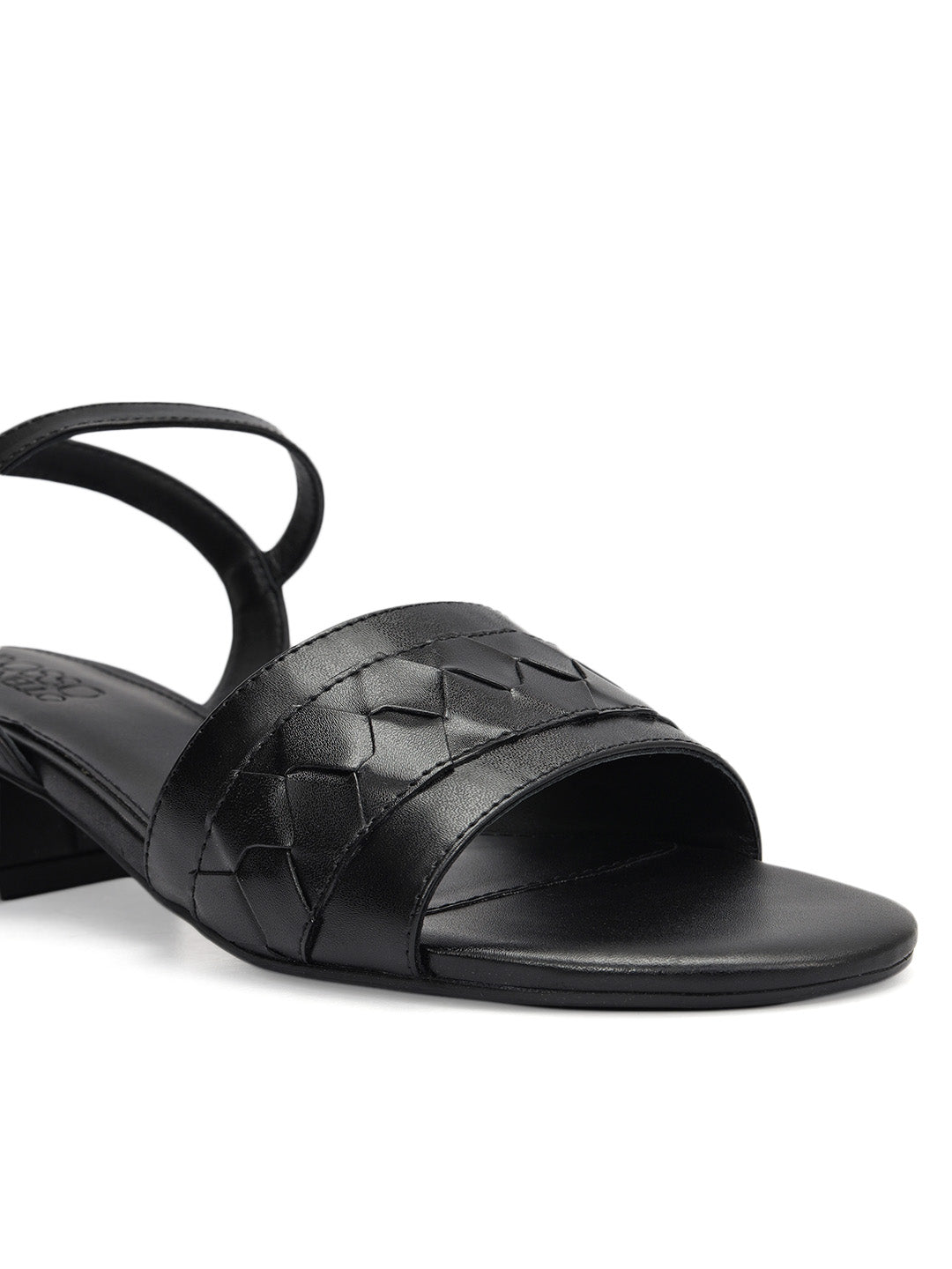 Black Woven Strap Block Heels