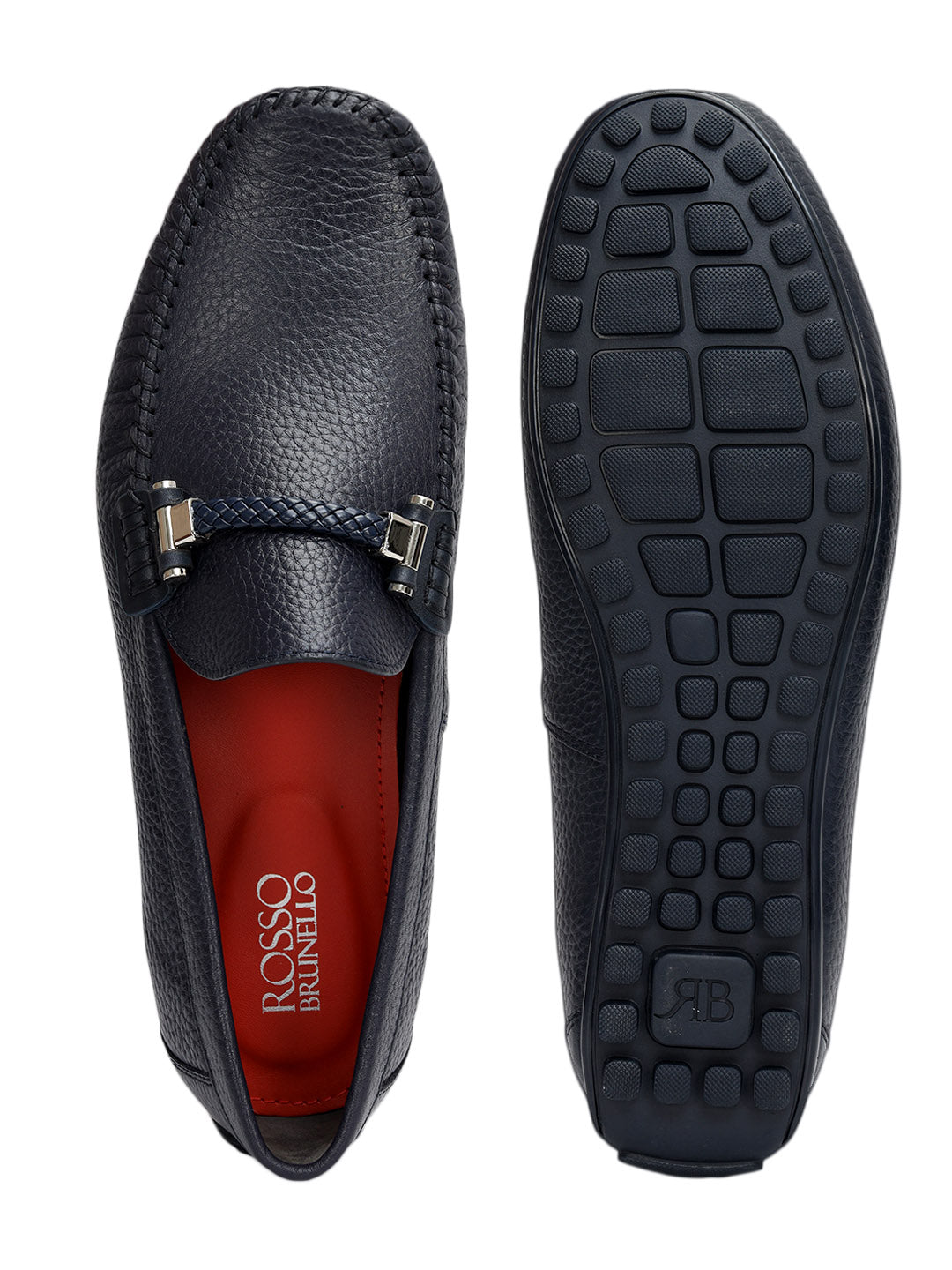 Made with genuine leather, these moccasins feature a braided panel on top for a stylish edge. The cushioned insole offers all-day comfort without compromising on appeal. Perfect for both party looks and casual outings, they pair effortlessly with any wardrobe.