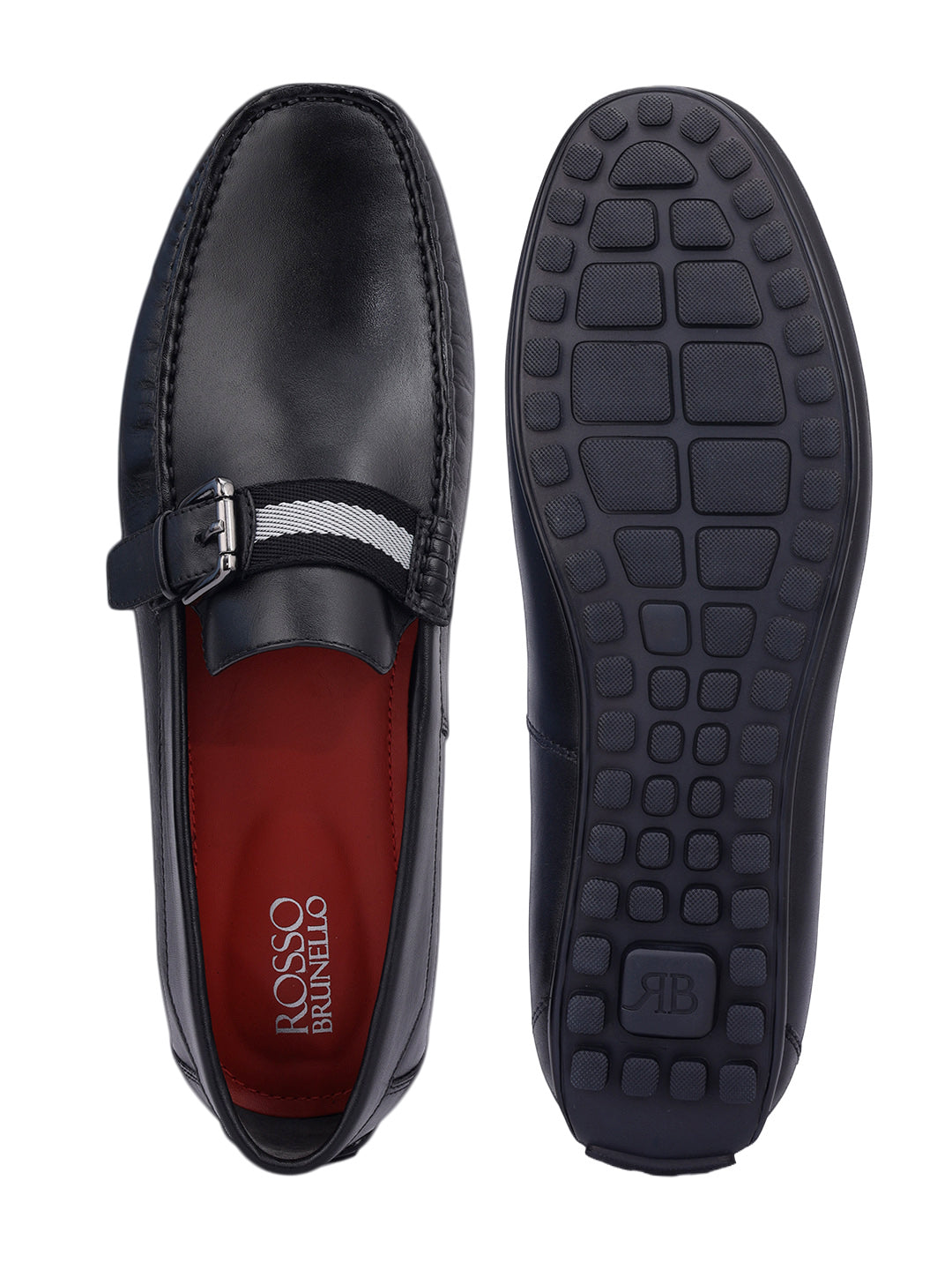 A polished buckle and subtle stripe detail give these moccasins a premium edge. The design ensures a comfortable fit while transitioning easily from casual plans to party settings. Stylish yet effortless, they elevate any look with luxury.
