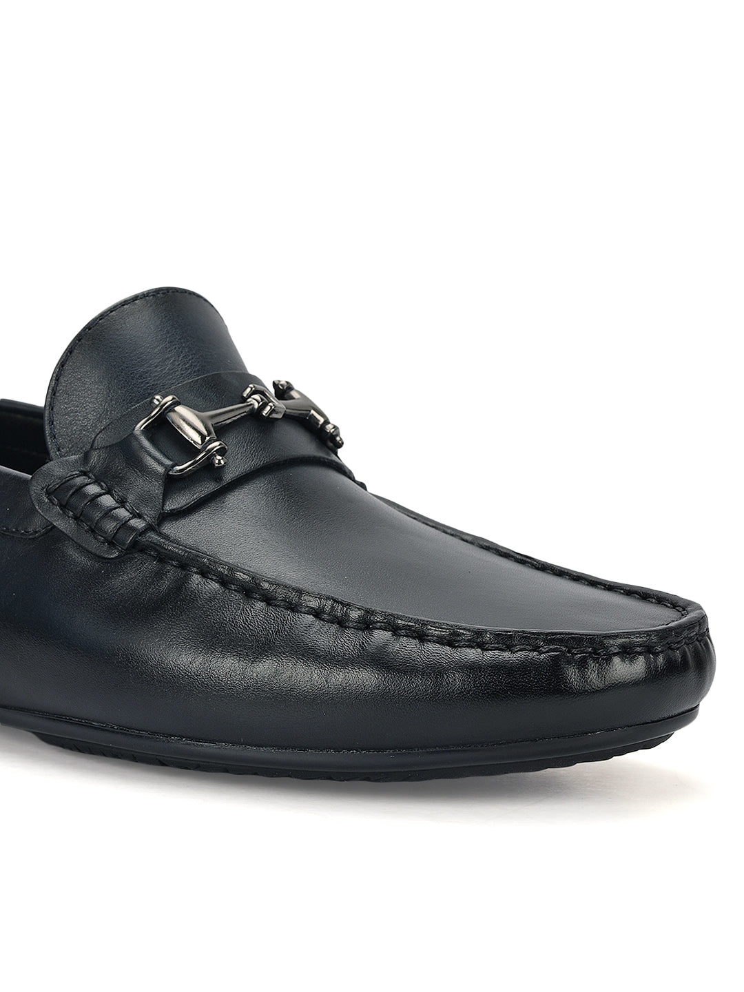 Blue Leather Moccasins With Buckle