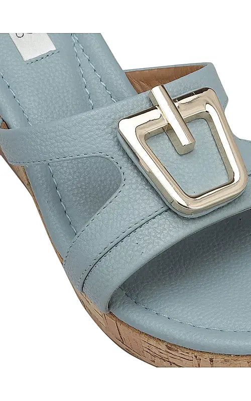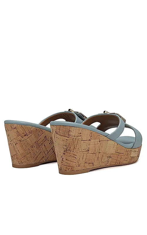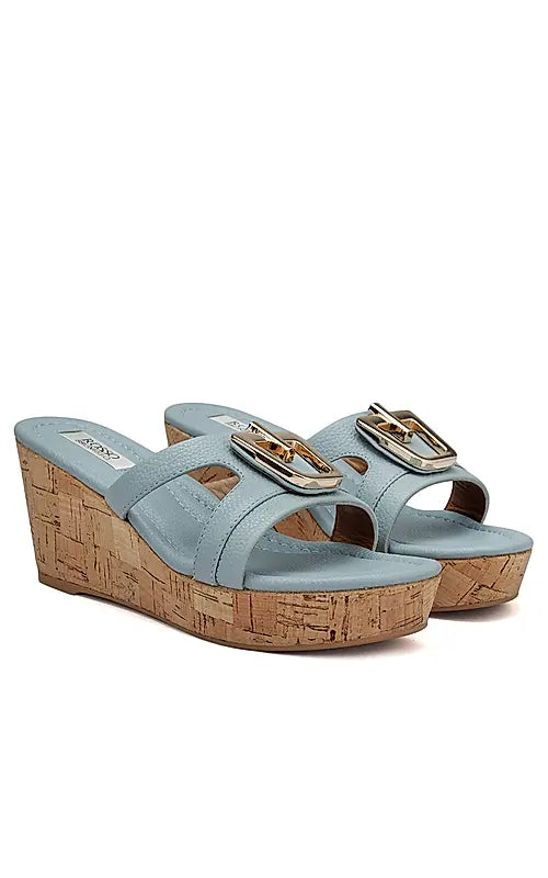 Discover elegance and comfort with our ladies' wedge heels. Featuring a stylish gold buckle atop for a touch of sophistication. Walk with confidence in every step.