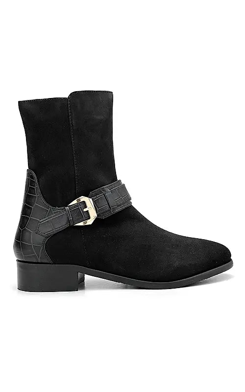 These ankle-length boots are crafted from high-quality suede leather, offering both elegance and durability. Perfect for formal settings, they provide a sophisticated touch to any outfit. Designed for comfort, they feature a cushioned insole and sturdy heel, making them ideal for long hours of wear without compromising on style.