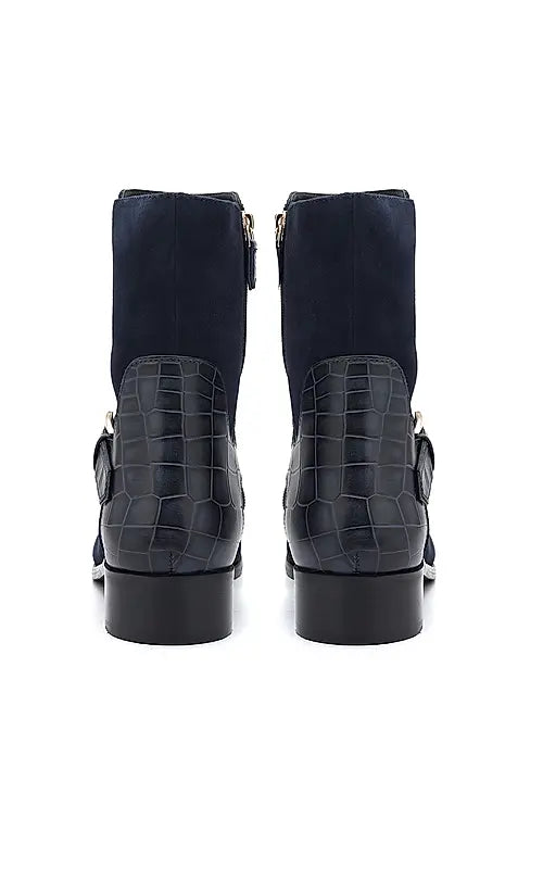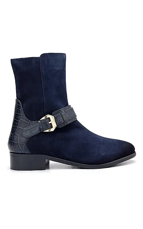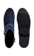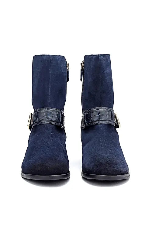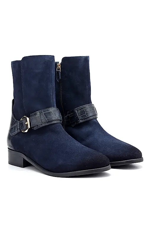 Blue Suede Leather Ankle Boots