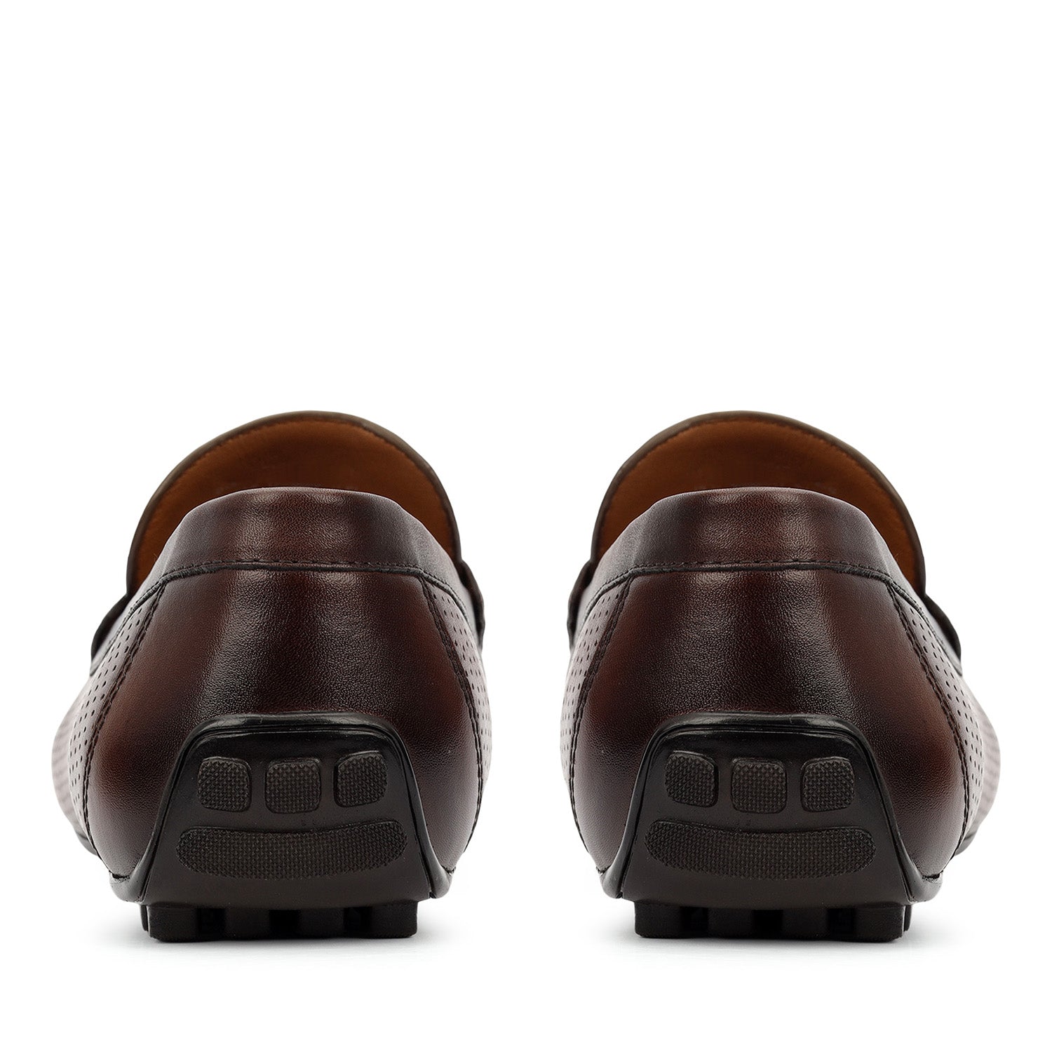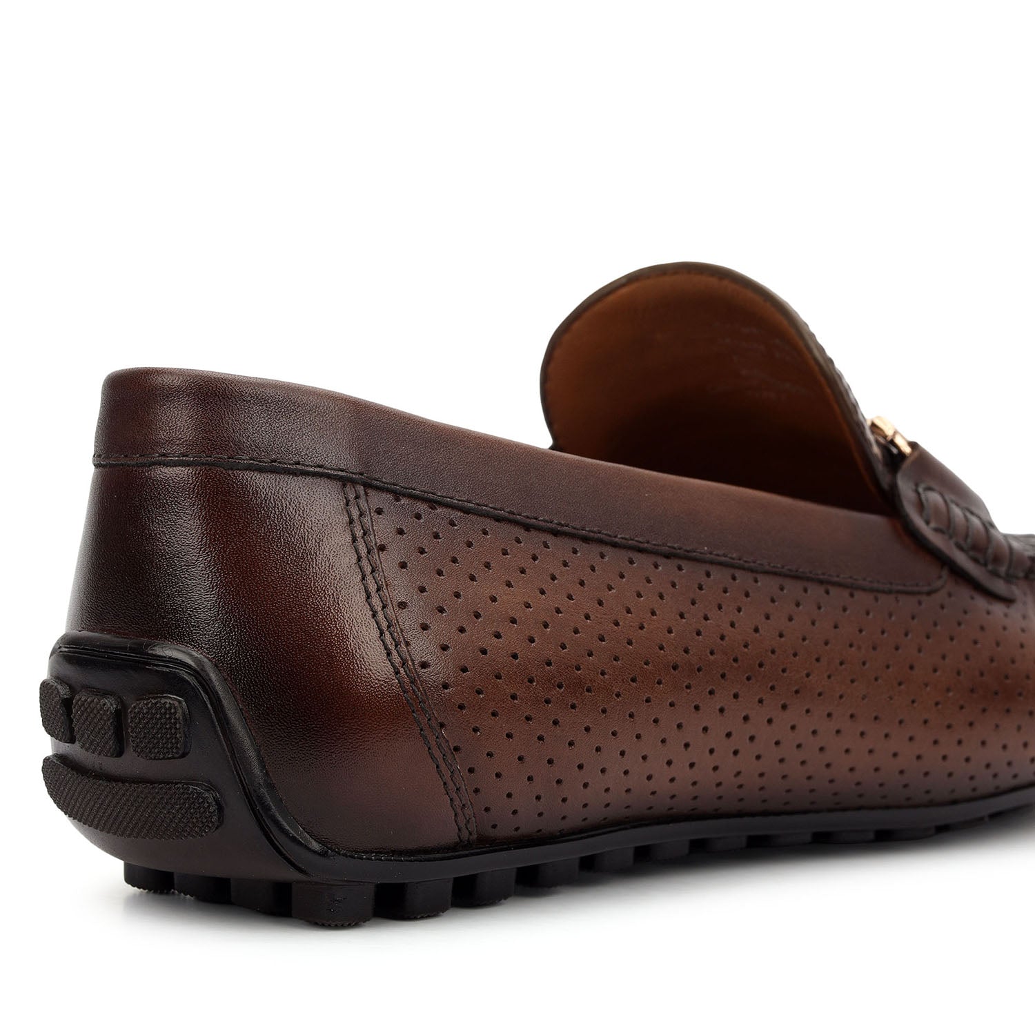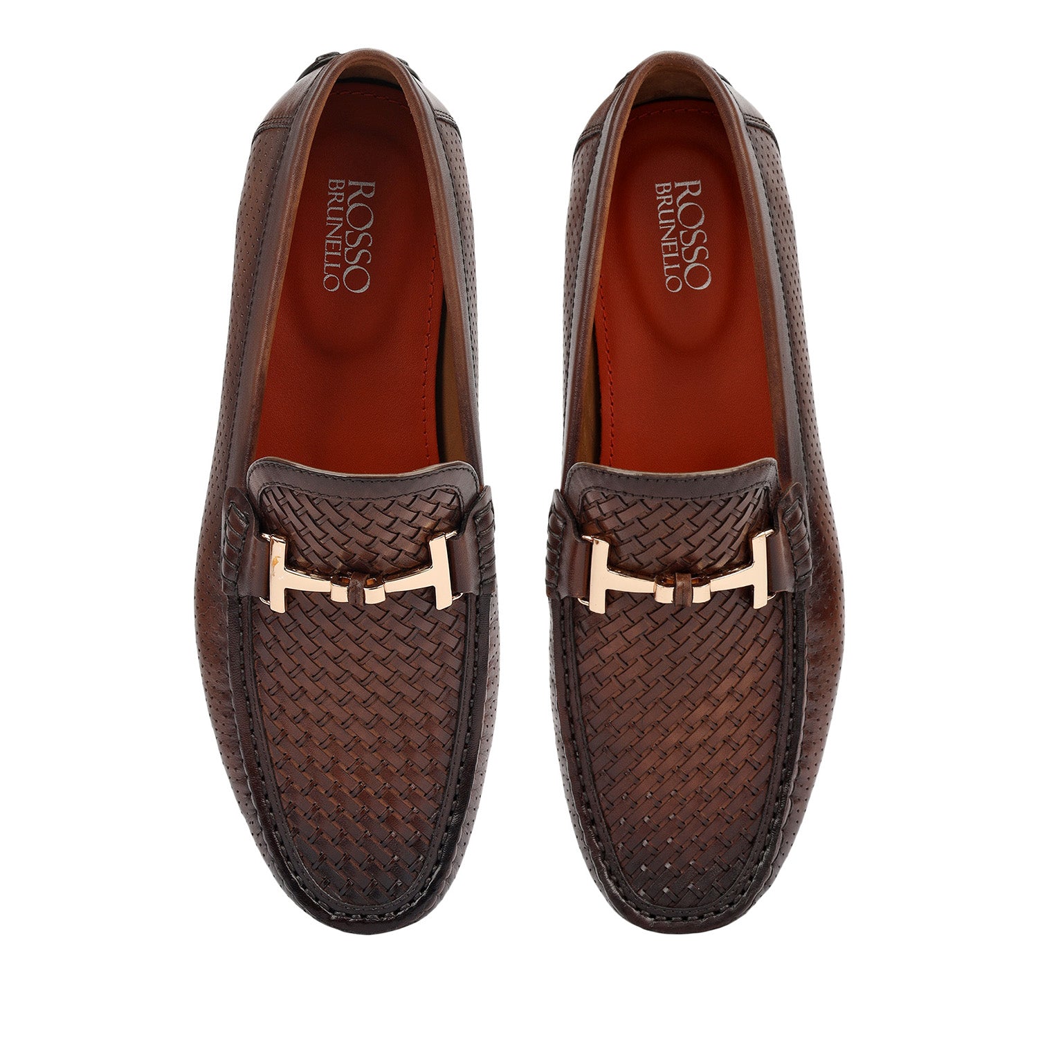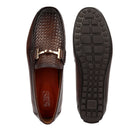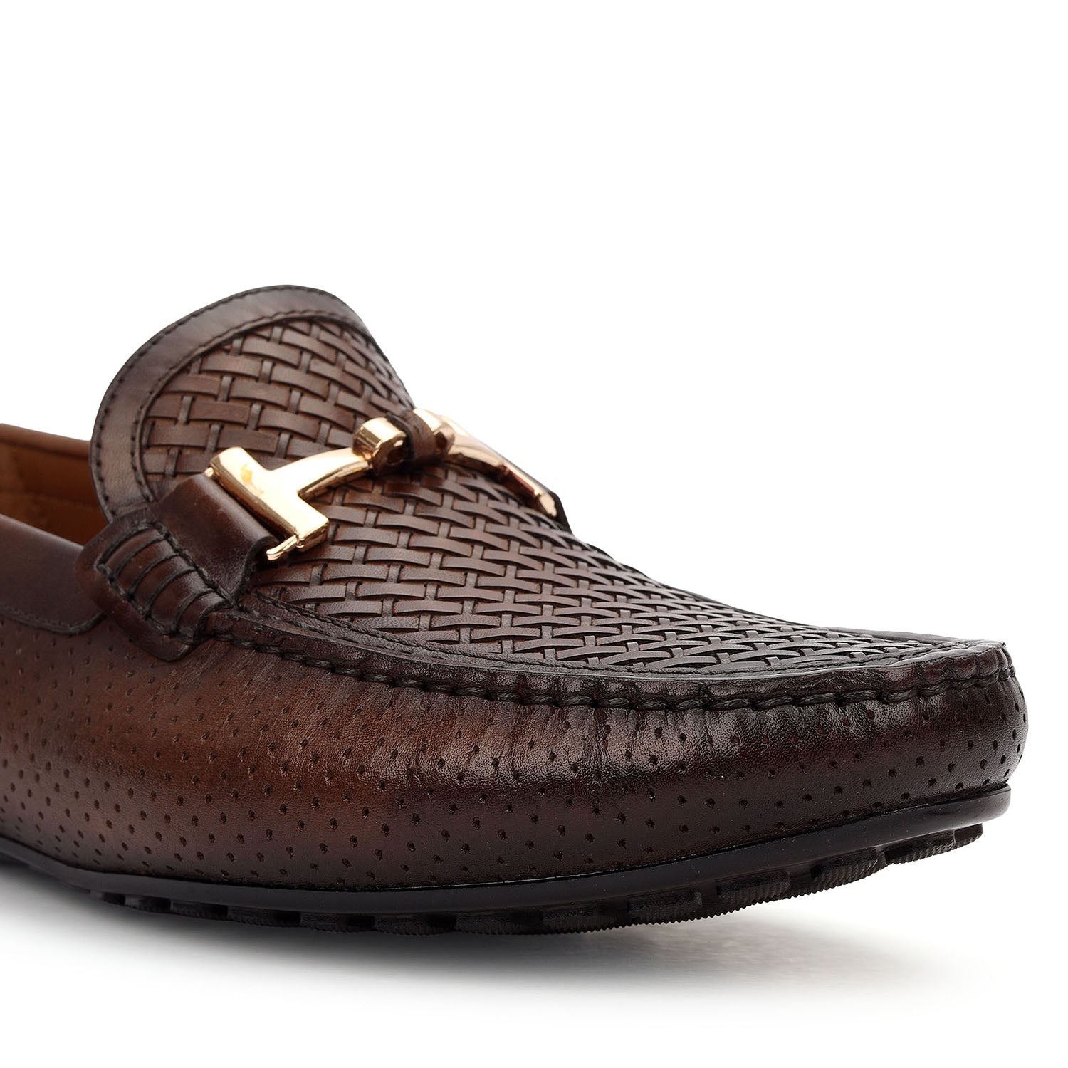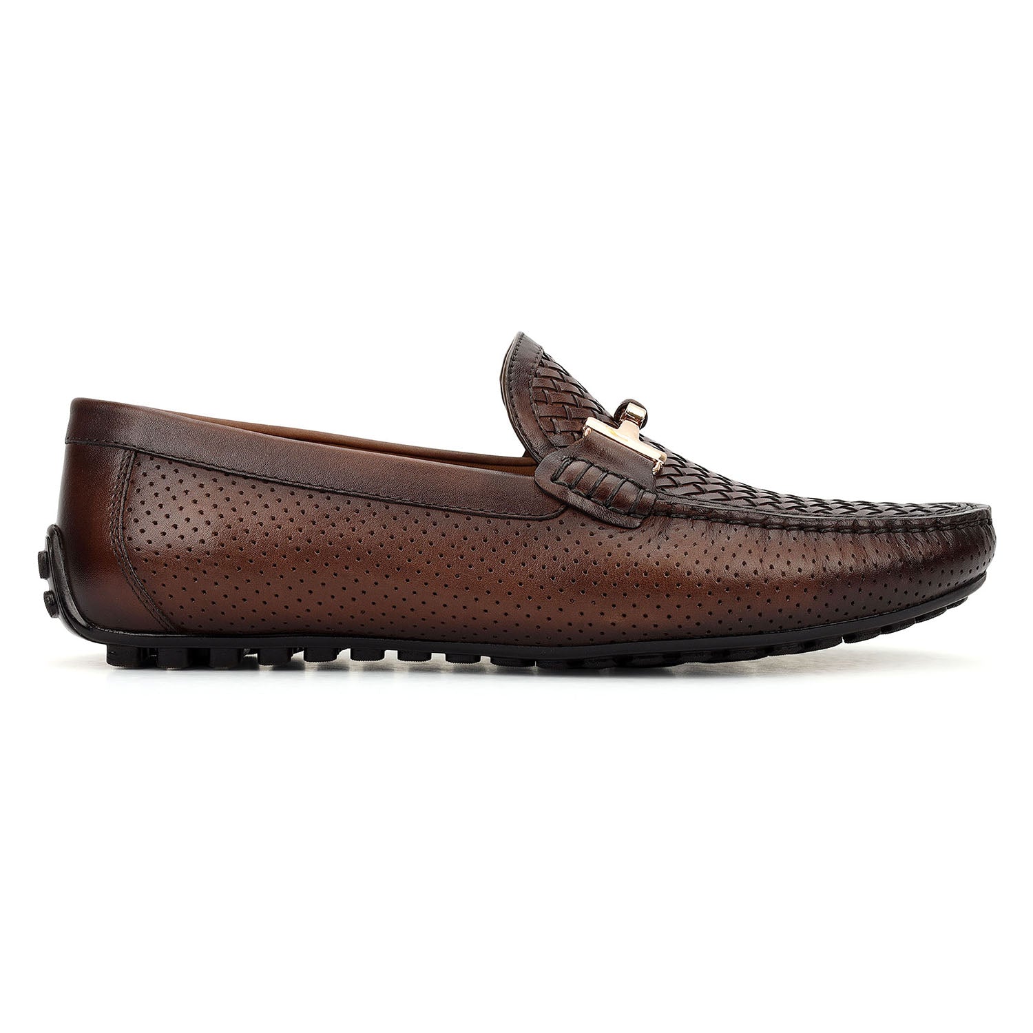 Upgrade your look with these brown woven leather moccasins, featuring a textured upper and sleek metal detail for a refined finish. Designed with an easy slip-on style, they offer comfort, flexibility, and all-day wear—perfect for casual and smart-casual occasions.
