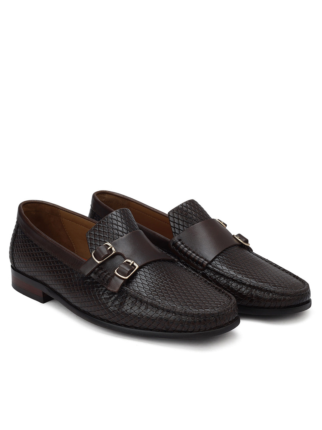 Step into sophistication with these monk strap moccasins for men. Crafted from textured leather, they combine a distinctive strap design with exceptional comfort. Perfect for adding a touch of elegance to both casual and formal outfits, these shoes provide a stylish and refined option for any wardrobe.
