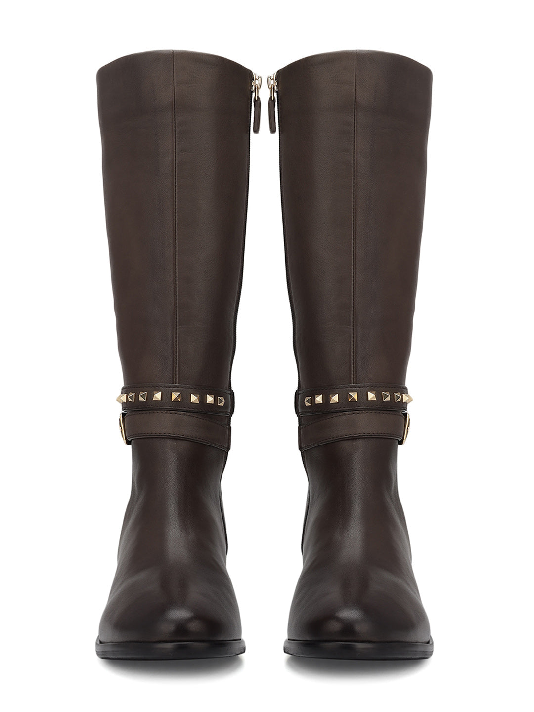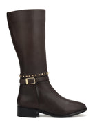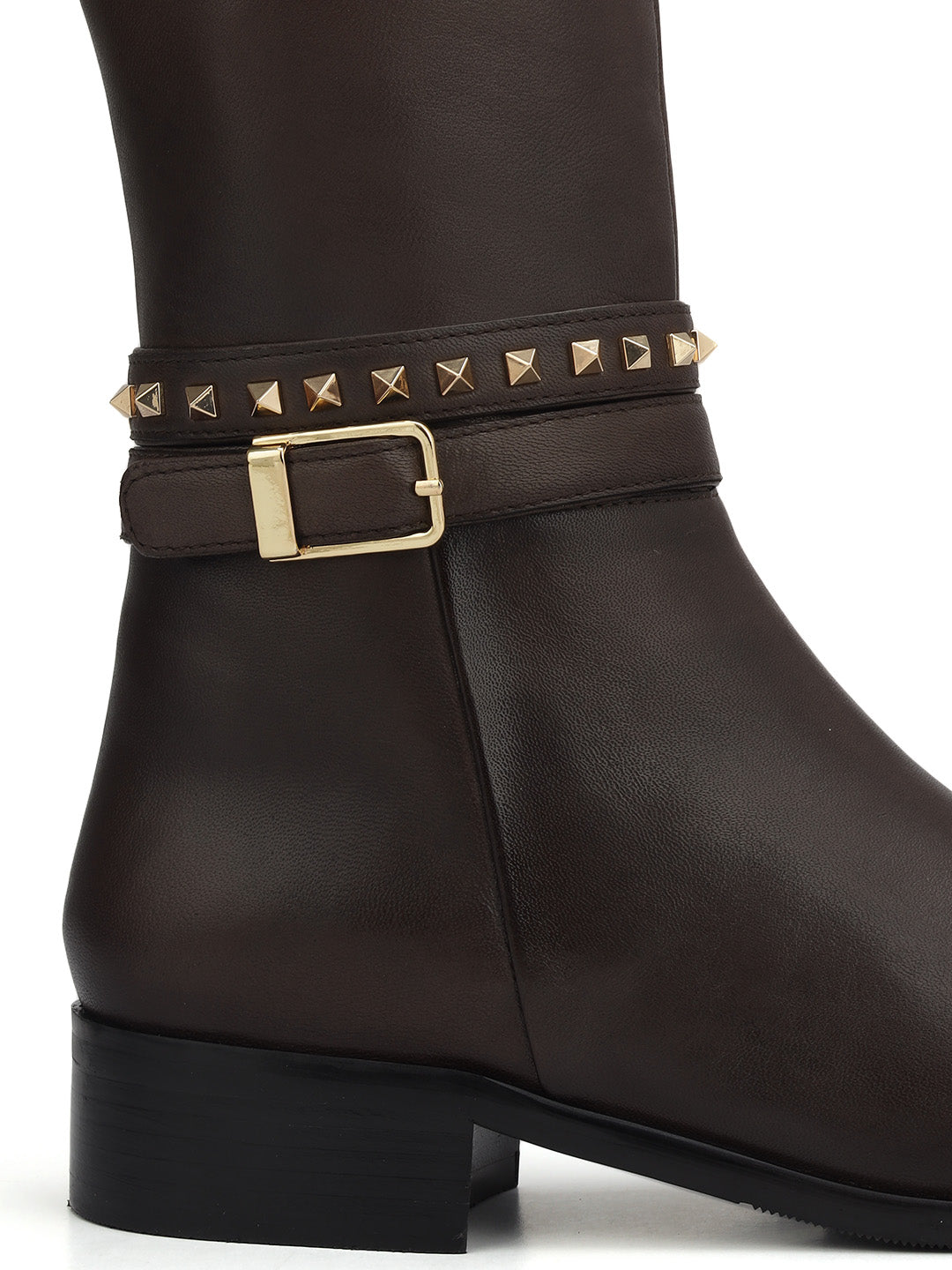 Step into sophistication with our ladies' boots, adorned with elegant gold studs. Perfect for formal occasions, these boots offer both style and comfort. Make a statement while staying at ease all day long.