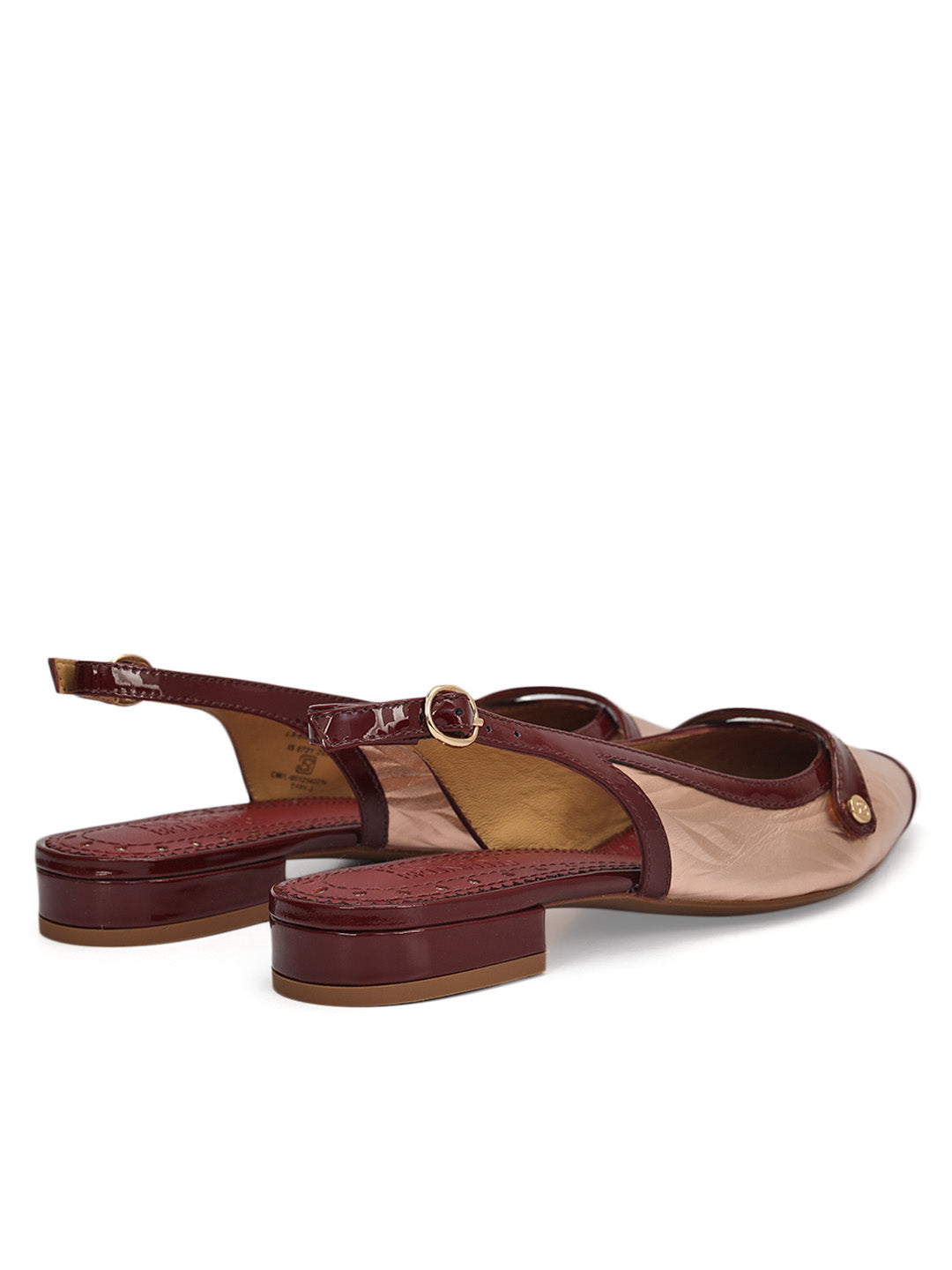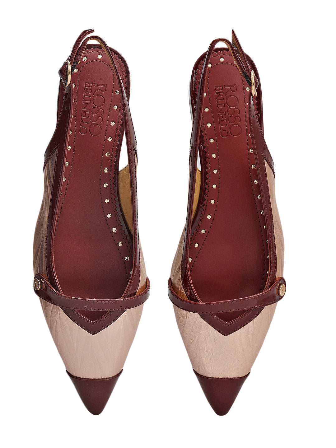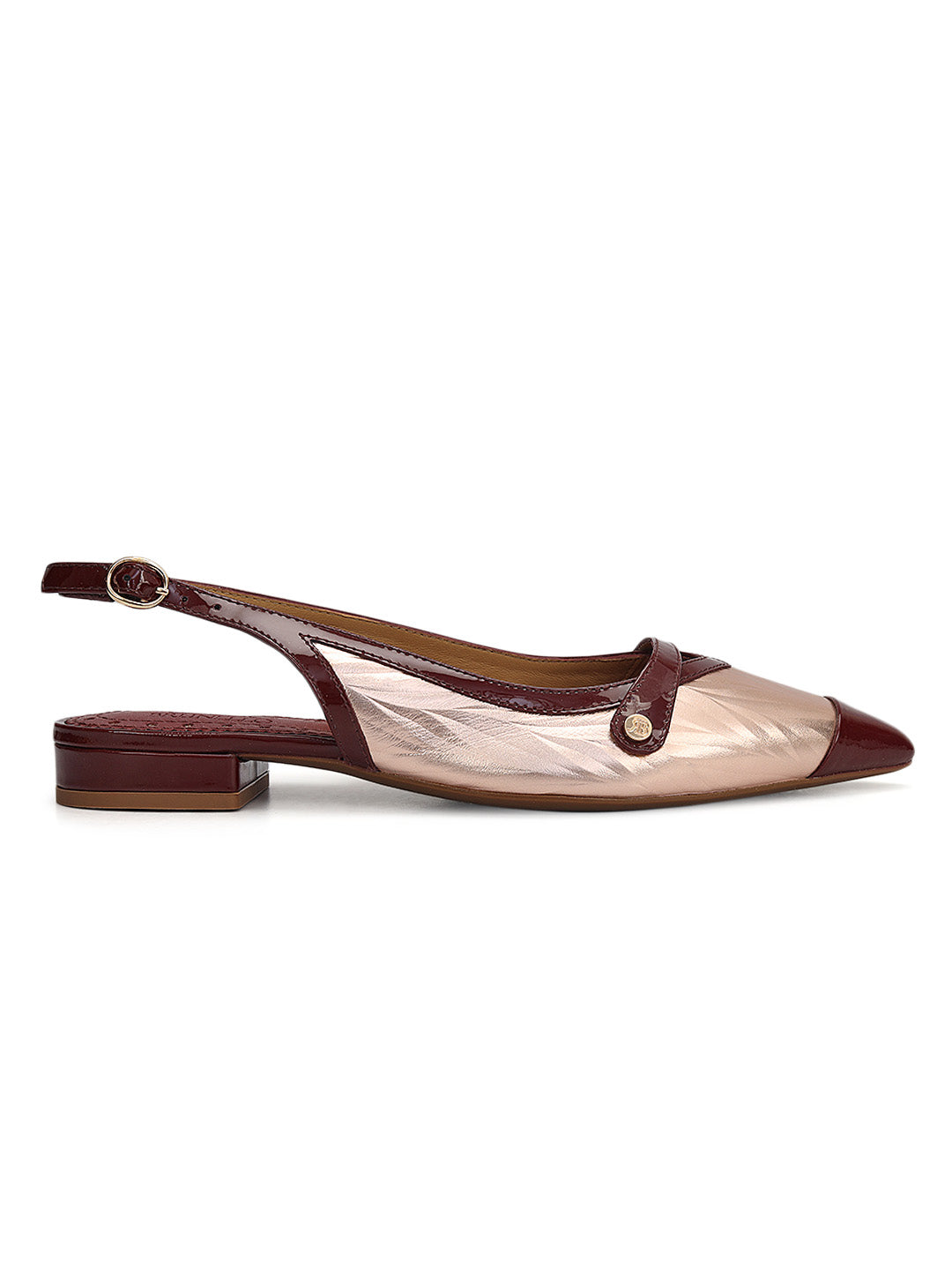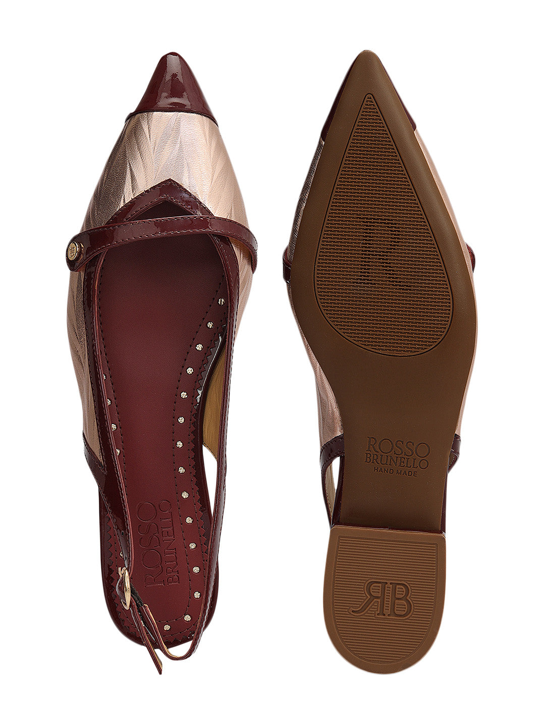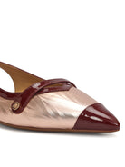 Crafted in a soft golden hue, these slingback flats feature a sleek pointed toe with refined contrast detailing. The adjustable slingback strap offers a secure and comfortable fit for extended wear. Ideal for formal occasions and polished daywear, they add a subtle hint of shine to your look.
