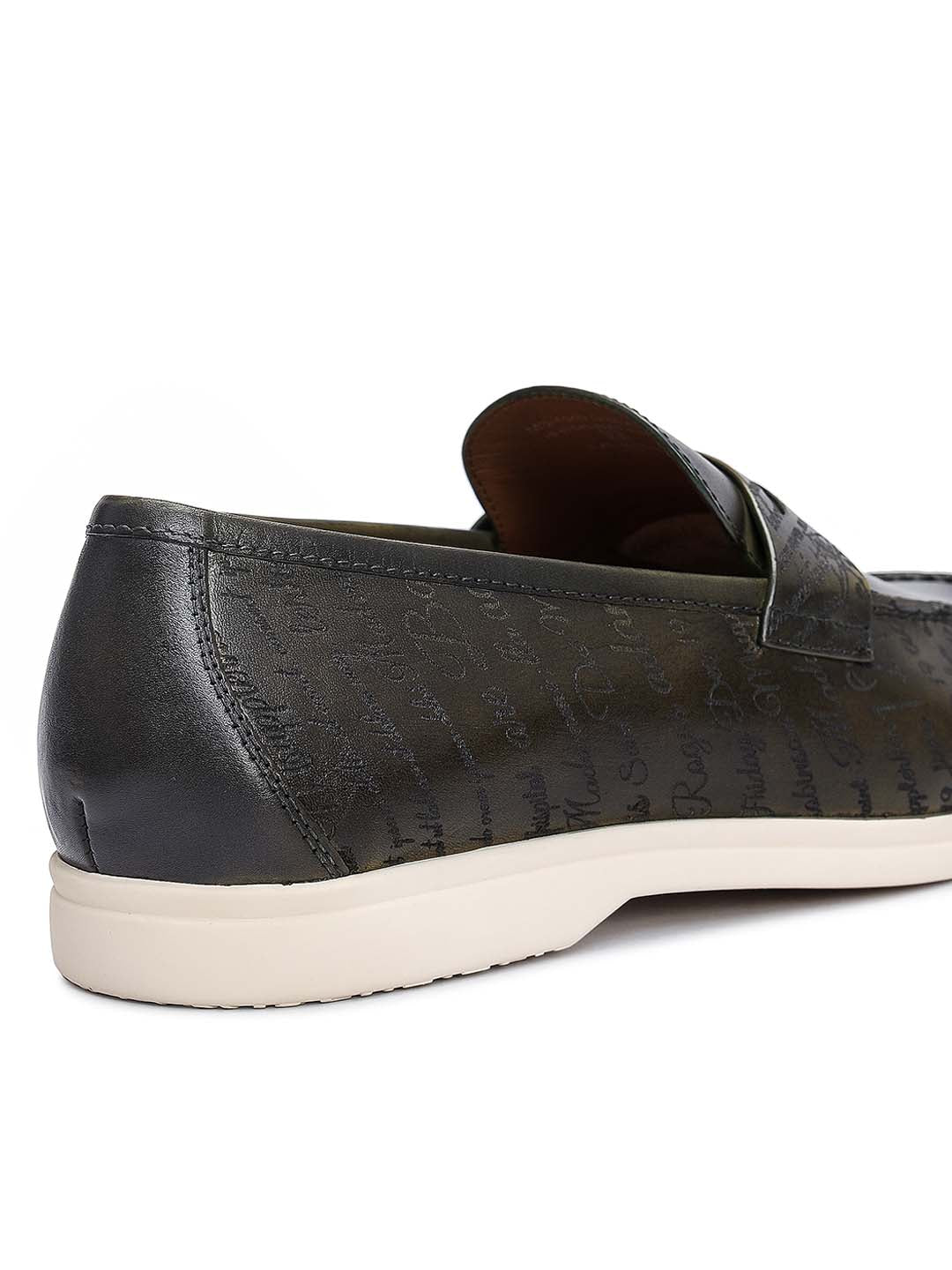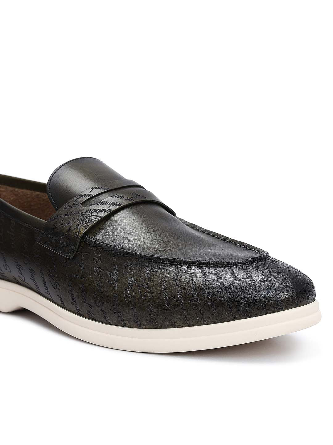 Green Calligraphy Loafers – designed with unique script detailing for a refined edge. A perfect blend of style and comfort, these slip-ons make an ideal choice for party wear while keeping you at ease all night. Elegant, versatile, and standout in every way.
