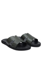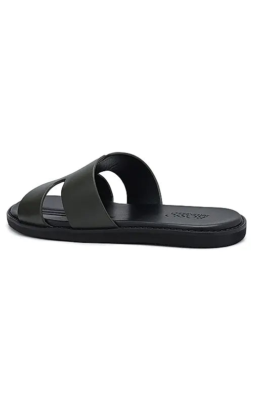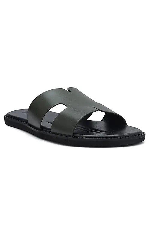 These green leather slippers feature an open-toe design, offering a relaxed and breathable fit. Perfect for casual wear, they provide superior comfort with every step, making them an ideal choice for everyday lounging or quick errands.