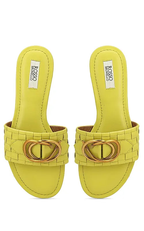Elevate your everyday look with our chic lemon sliders, featuring woven straps and a luxurious gold buckle detail. Designed for both style and comfort, these sliders are your go-to choice for casual outings and relaxed days.