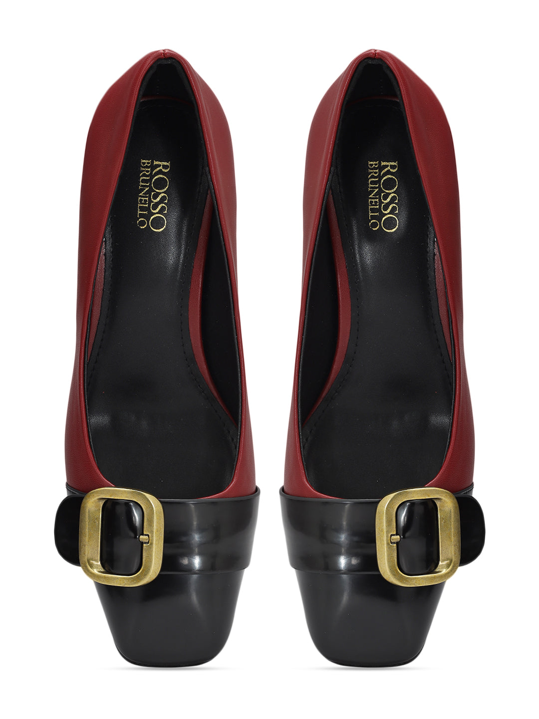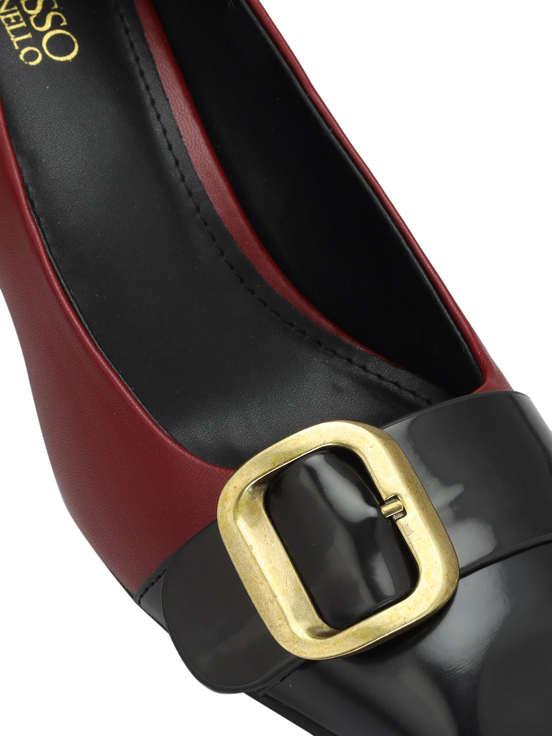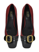 Red & Black Buckle Embellished Block Heels