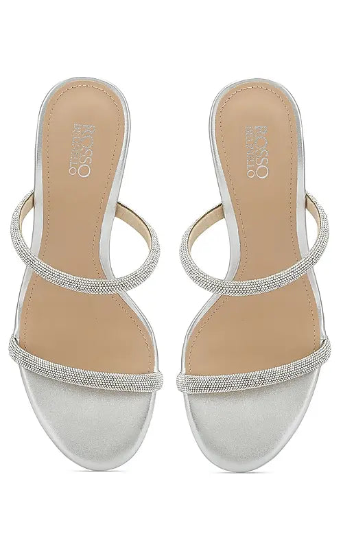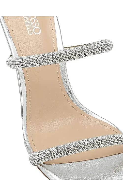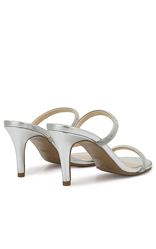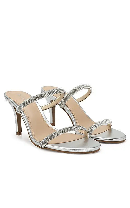 Elevate your ensemble with these striking silver open-toe heels featuring intricate strap details. Designed to blend style with comfort, they exude sophistication at every step. Make a bold statement with their eye-catching silhouette and refined accents. Perfect for adding flair to any outfit."