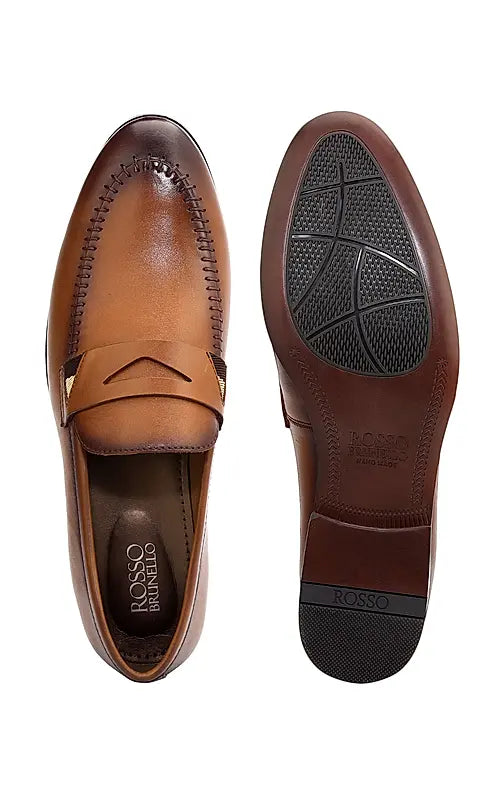 Crafted from genuine leather, these men's loafers offer a refined, plain design perfect for formal settings. The top panel detail enhances their stylish look, while the comfortable construction ensures long-lasting wear.