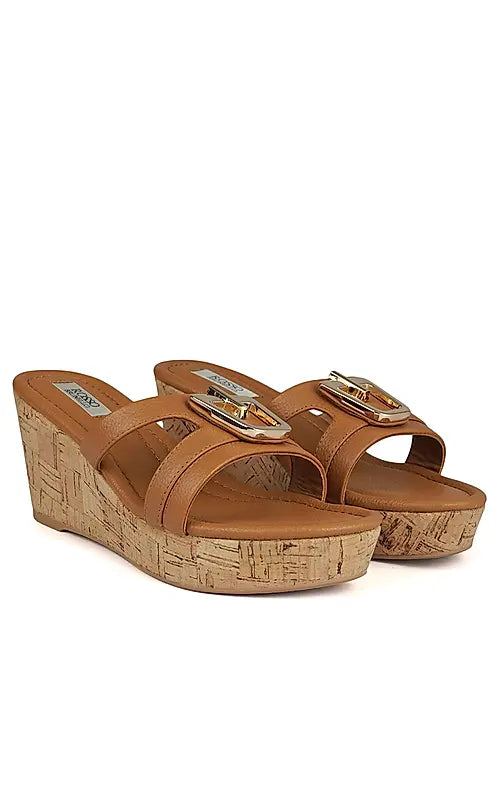 Discover elegance and comfort with our ladies' wedge heels. Featuring a stylish gold buckle atop for a touch of sophistication. Walk with confidence in every step.