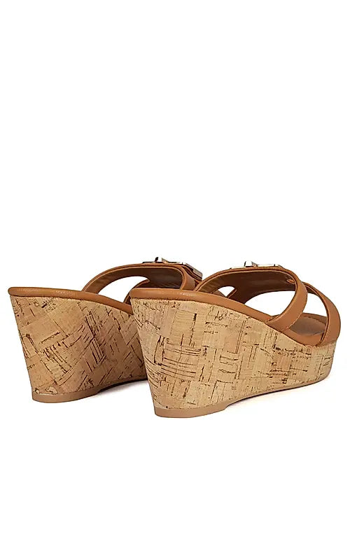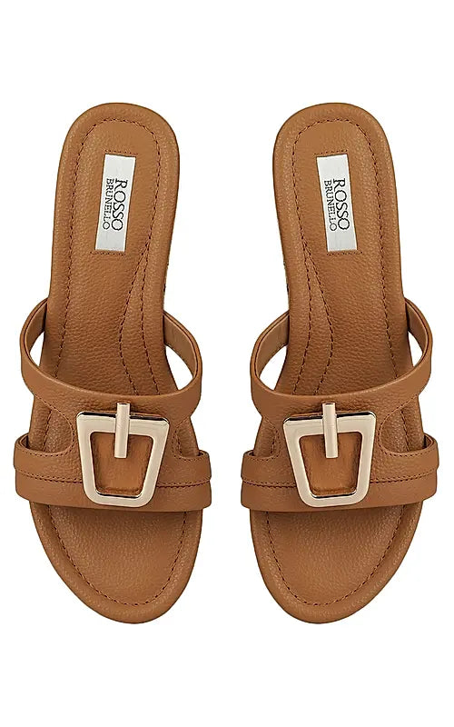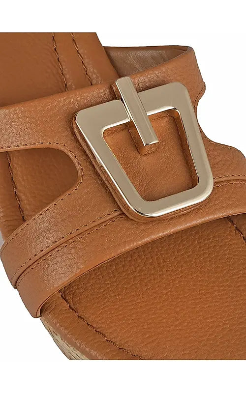Tan Leather Wedges With Buckle
