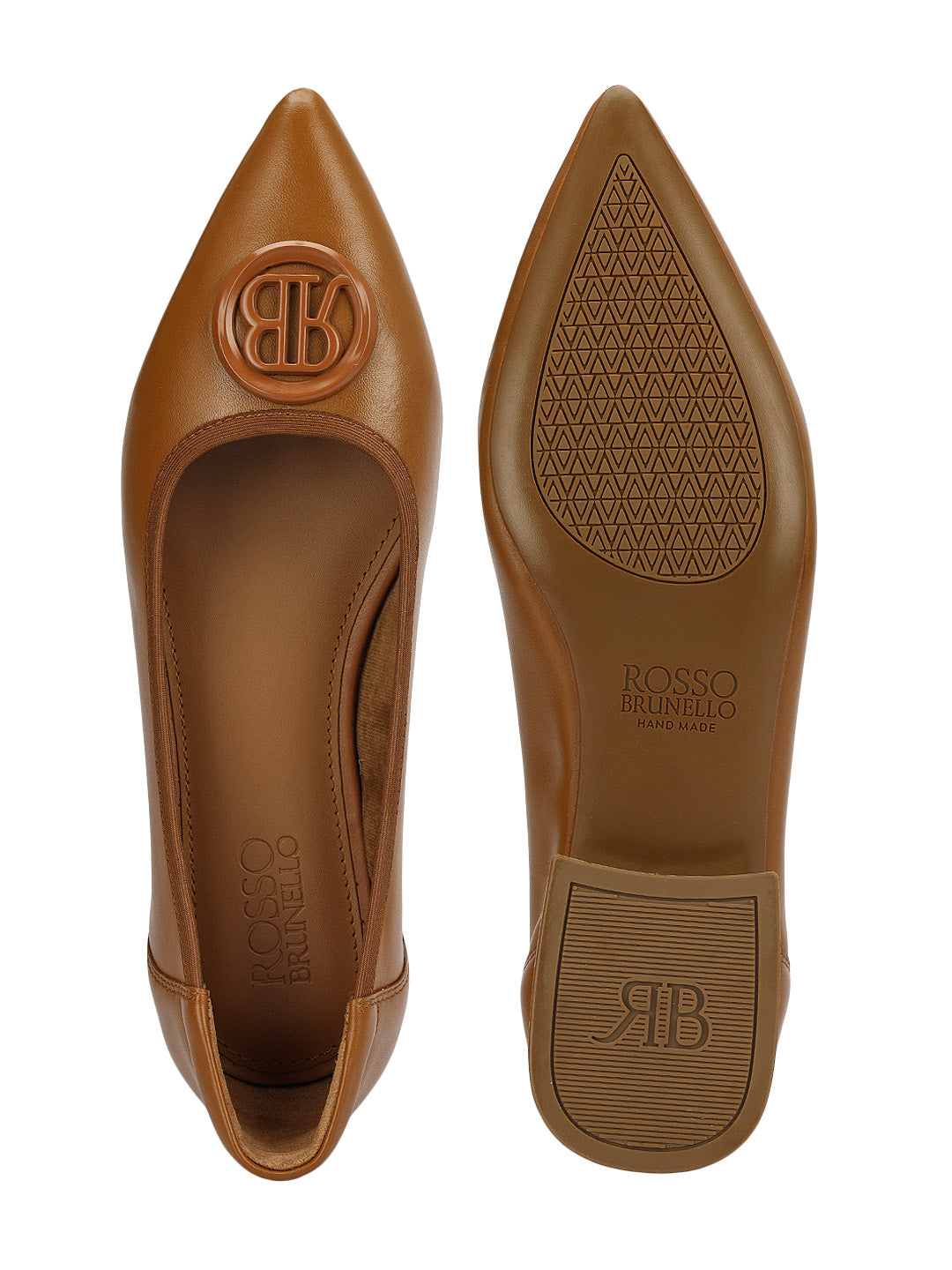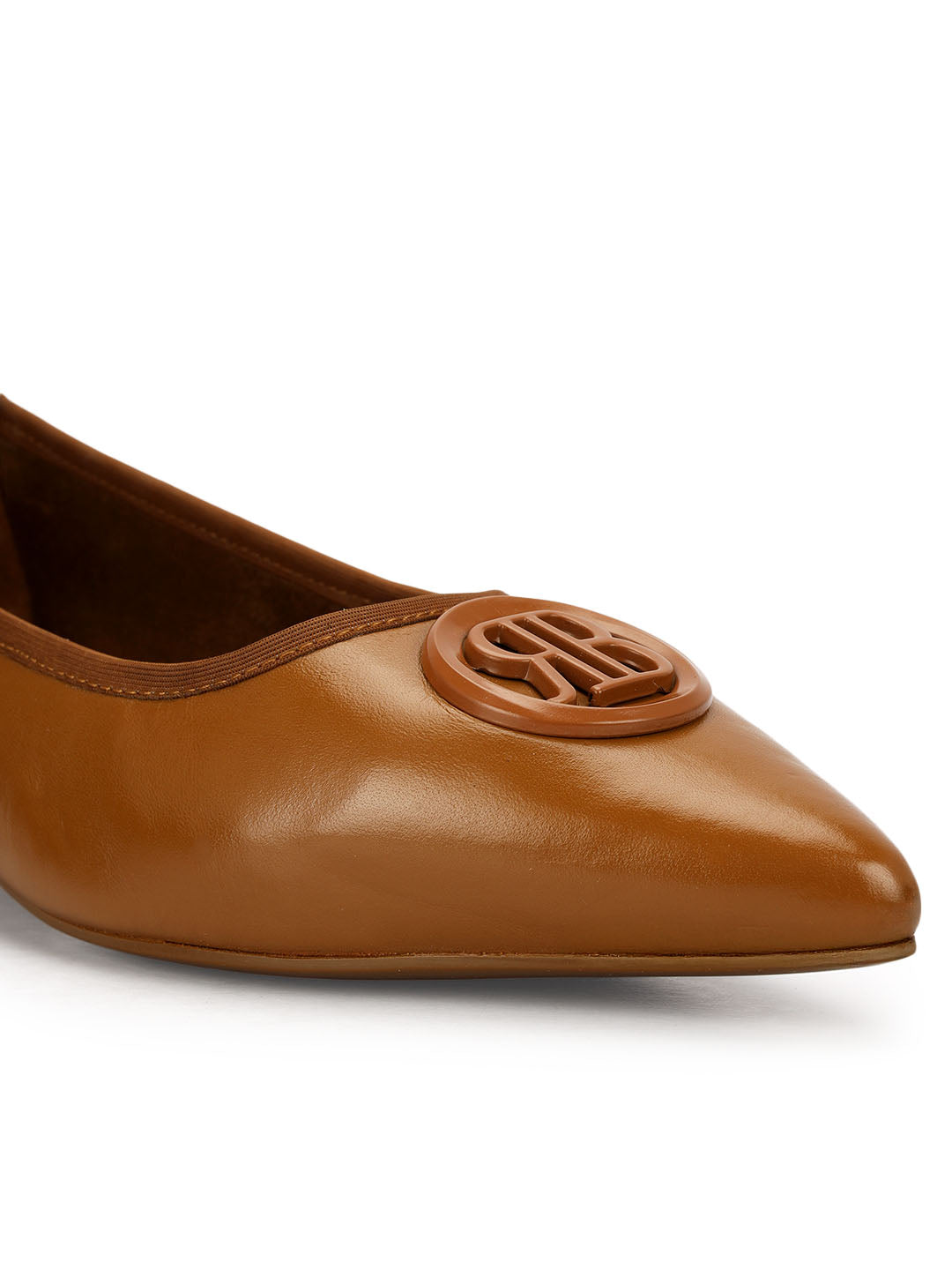 Crafted from plain leather, these pointed-toe heels offer a classic and refined look for everyday formals. The sturdy block heel and cushioned insole provide a comfortable feel throughout the day. Subtle logo detailing adds a polished finish to this versatile pair.
