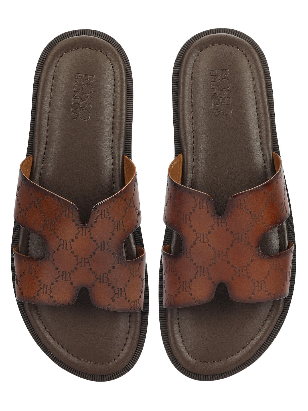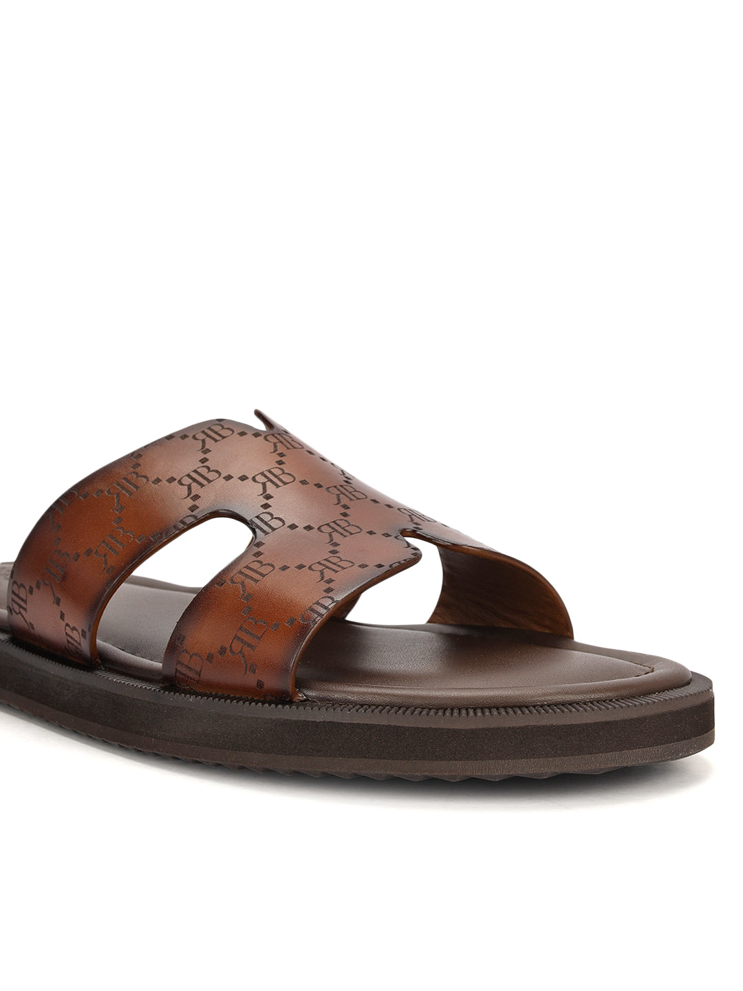 Tan Monogram Leather Slippers
