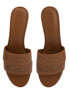 Tan Plain Leather Block Heels
