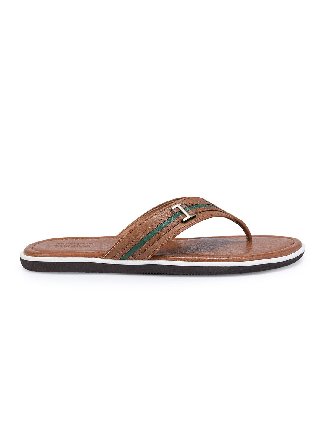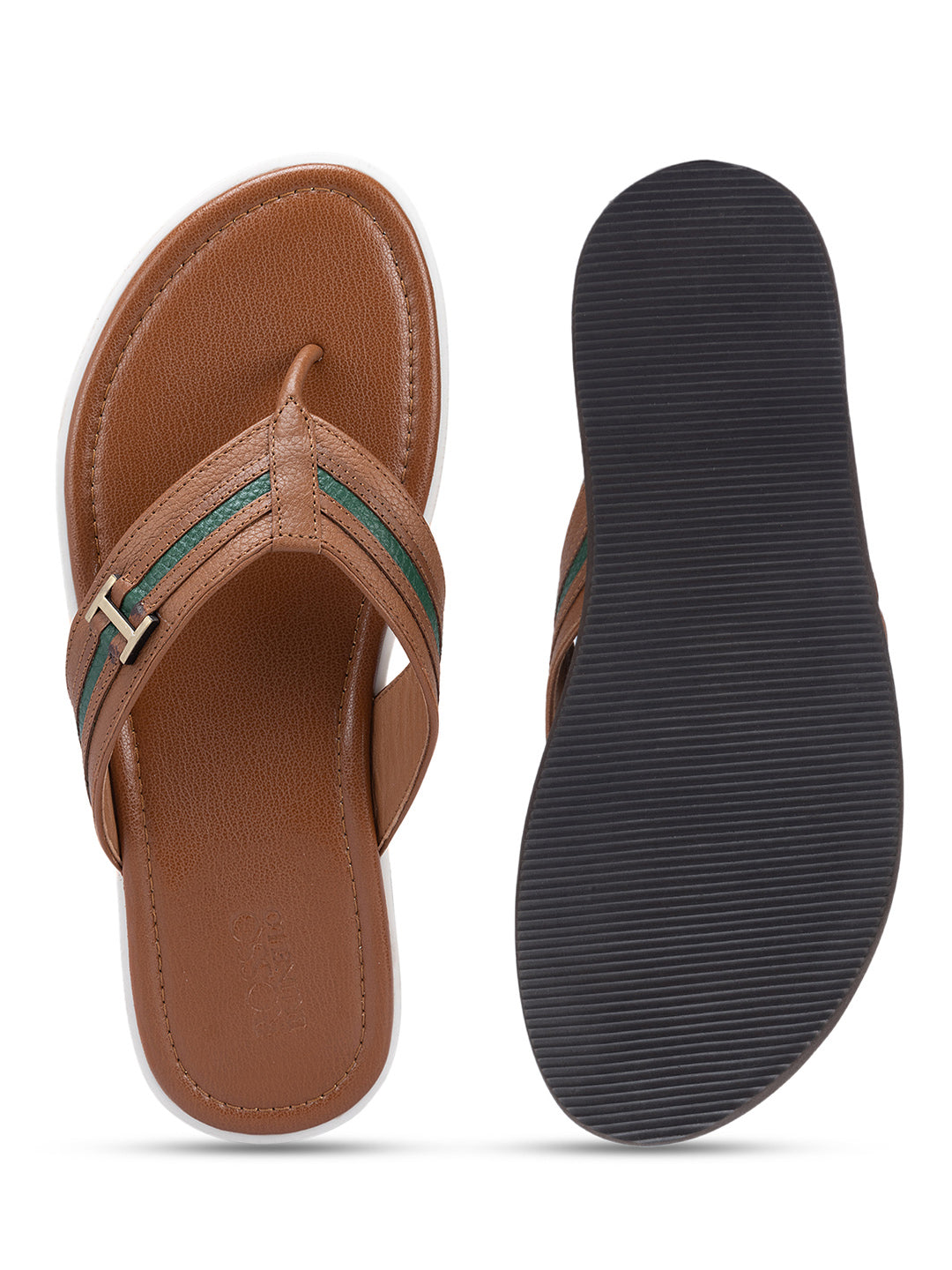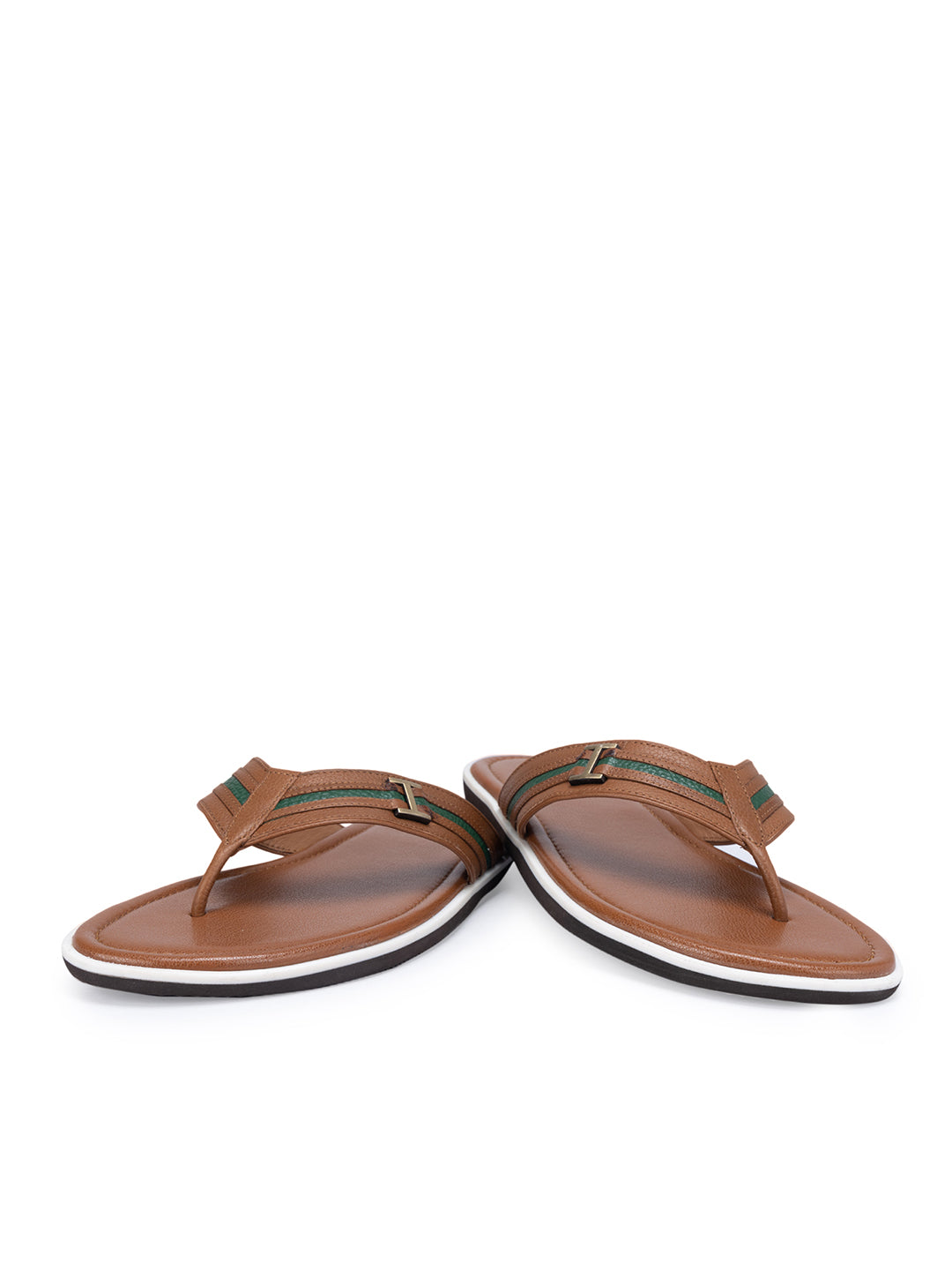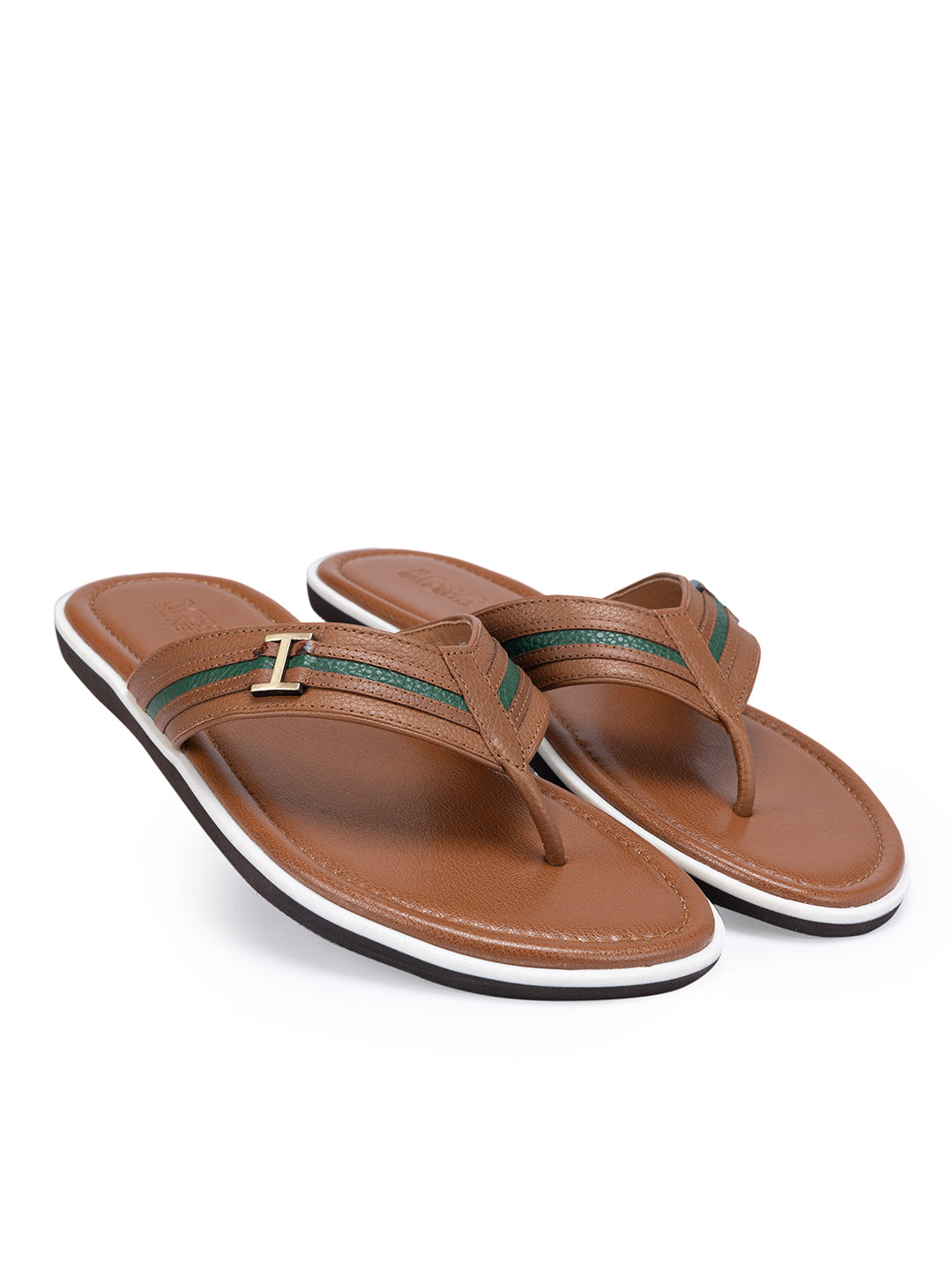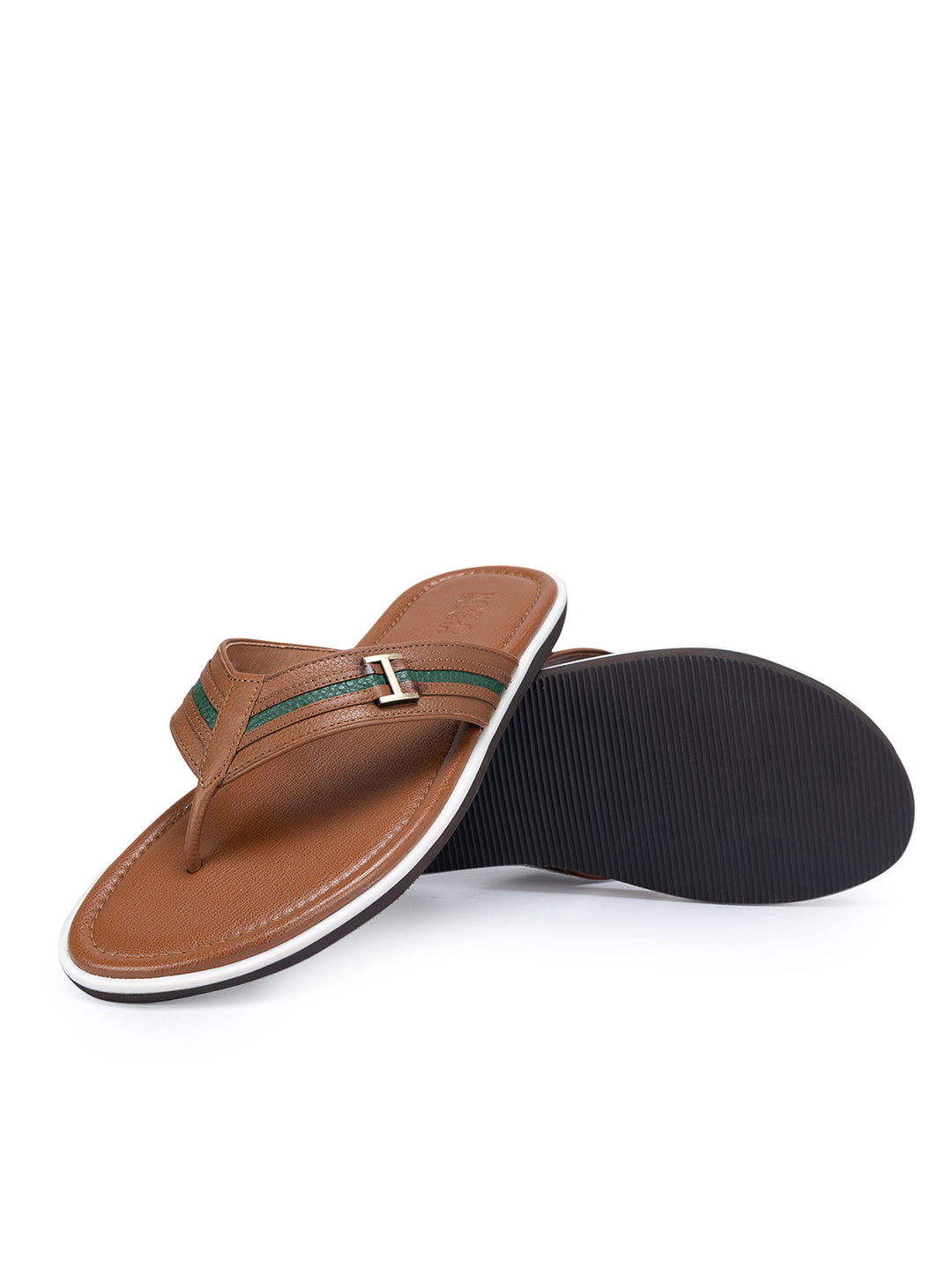 Tan Textured Leather Striped Flats