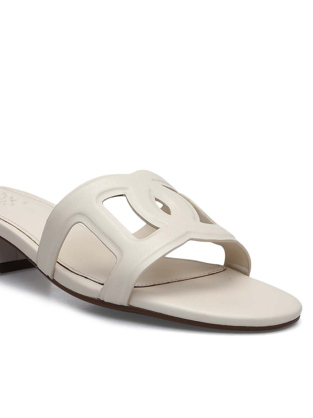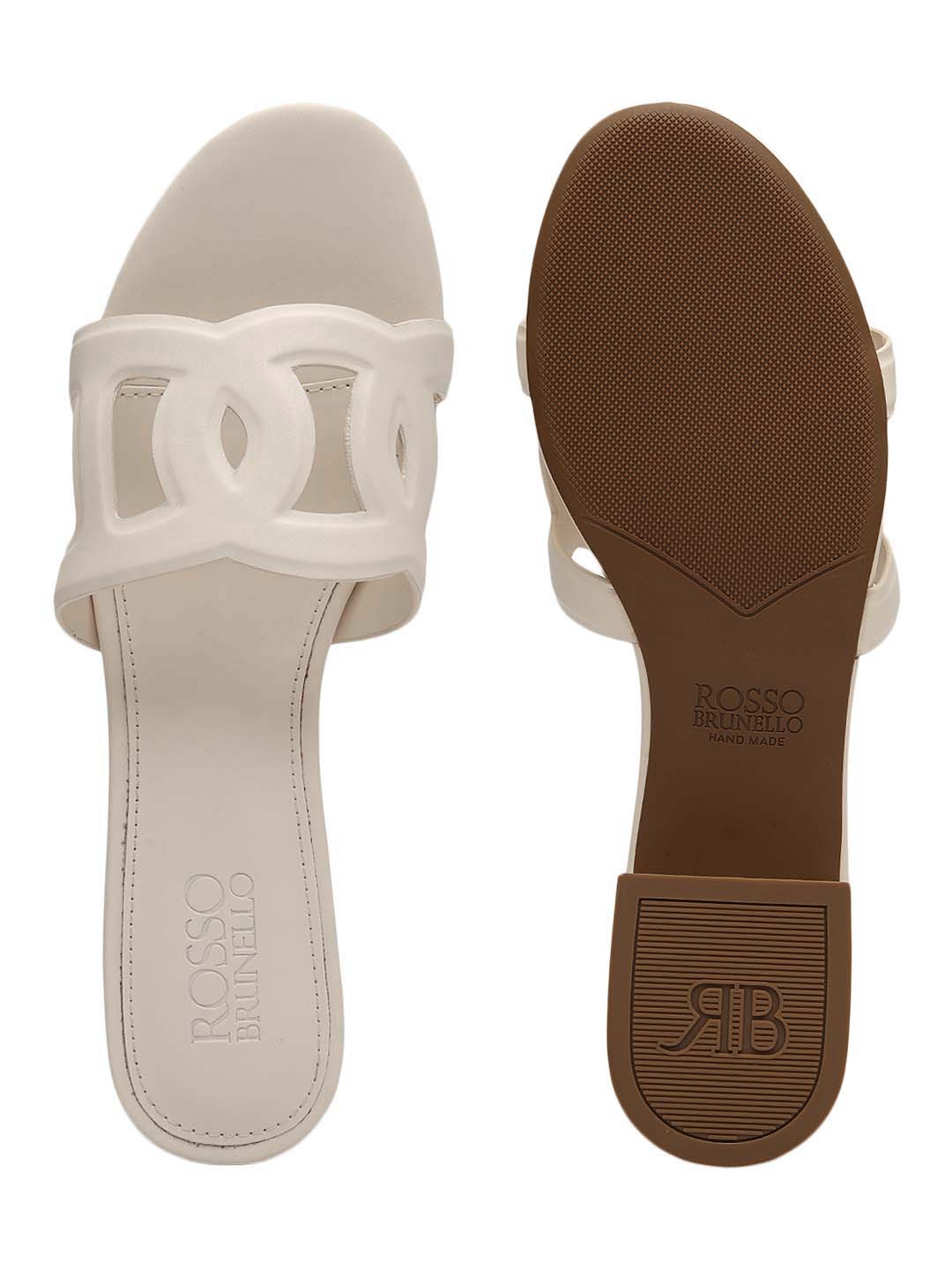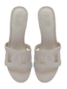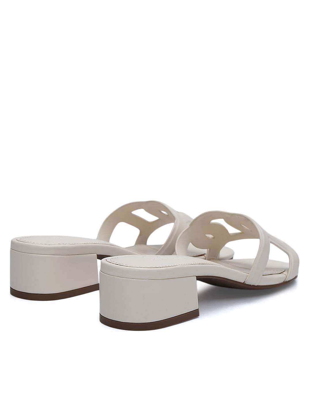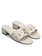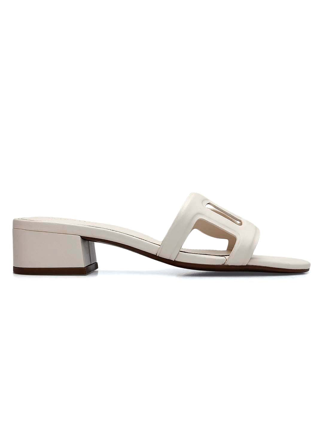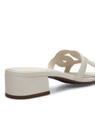 Step into effortless sophistication with these white slide block heels. Crafted from smooth leather, they feature a wide cutout strap that blends modern minimalism with everyday comfort. The sturdy block heel and cushioned footbed make them a versatile pick for both casual outings and refined looks.