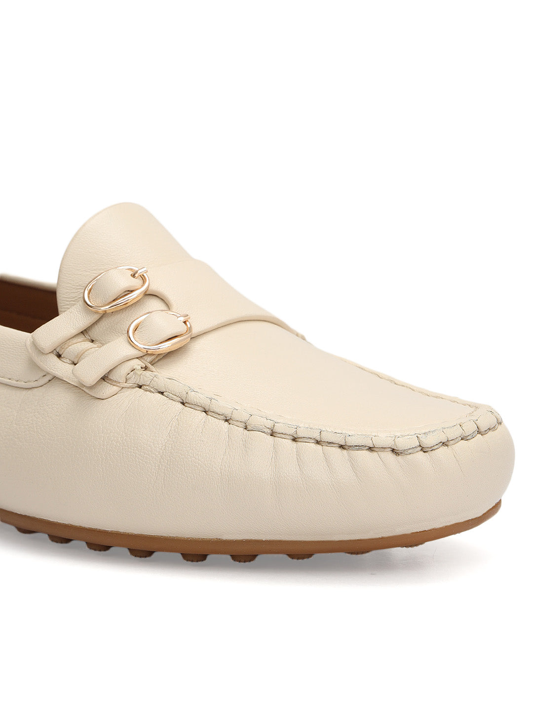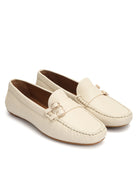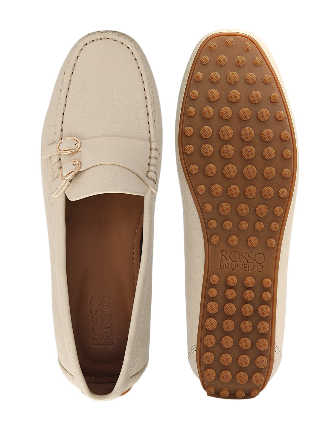 Crafted in premium leather, these white double-buckle women’s moccasins deliver a polished formal look with all day comfort. Designed with a soft inner lining and a flexible sole, they ensure ease of wear throughout the day. A refined style that pairs effortlessly with office and semi-formal outfits.