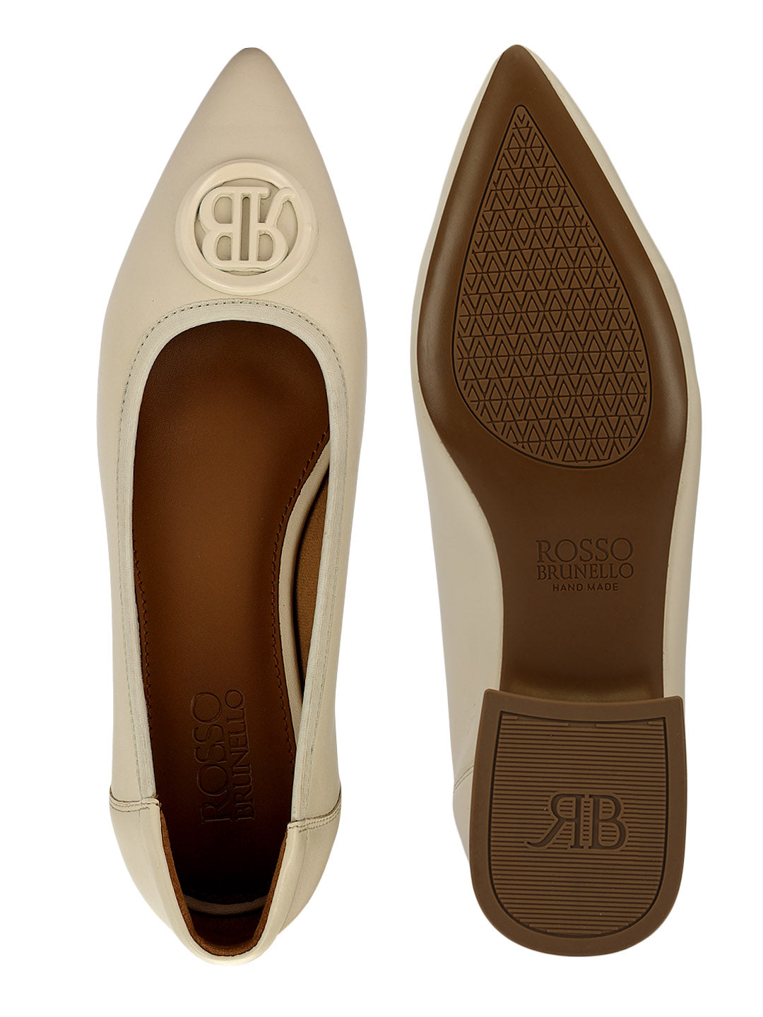Crafted from plain leather, these pointed-toe heels offer a classic and refined look for everyday formals. The sturdy block heel and cushioned insole provide a comfortable feel throughout the day. Subtle logo detailing adds a polished finish to this versatile pair.