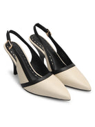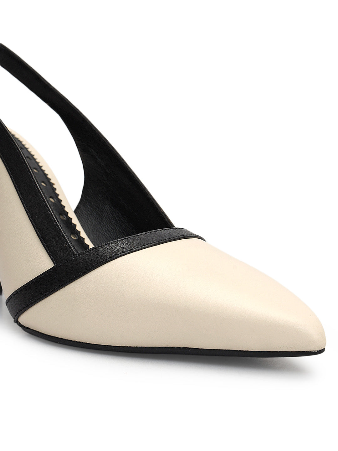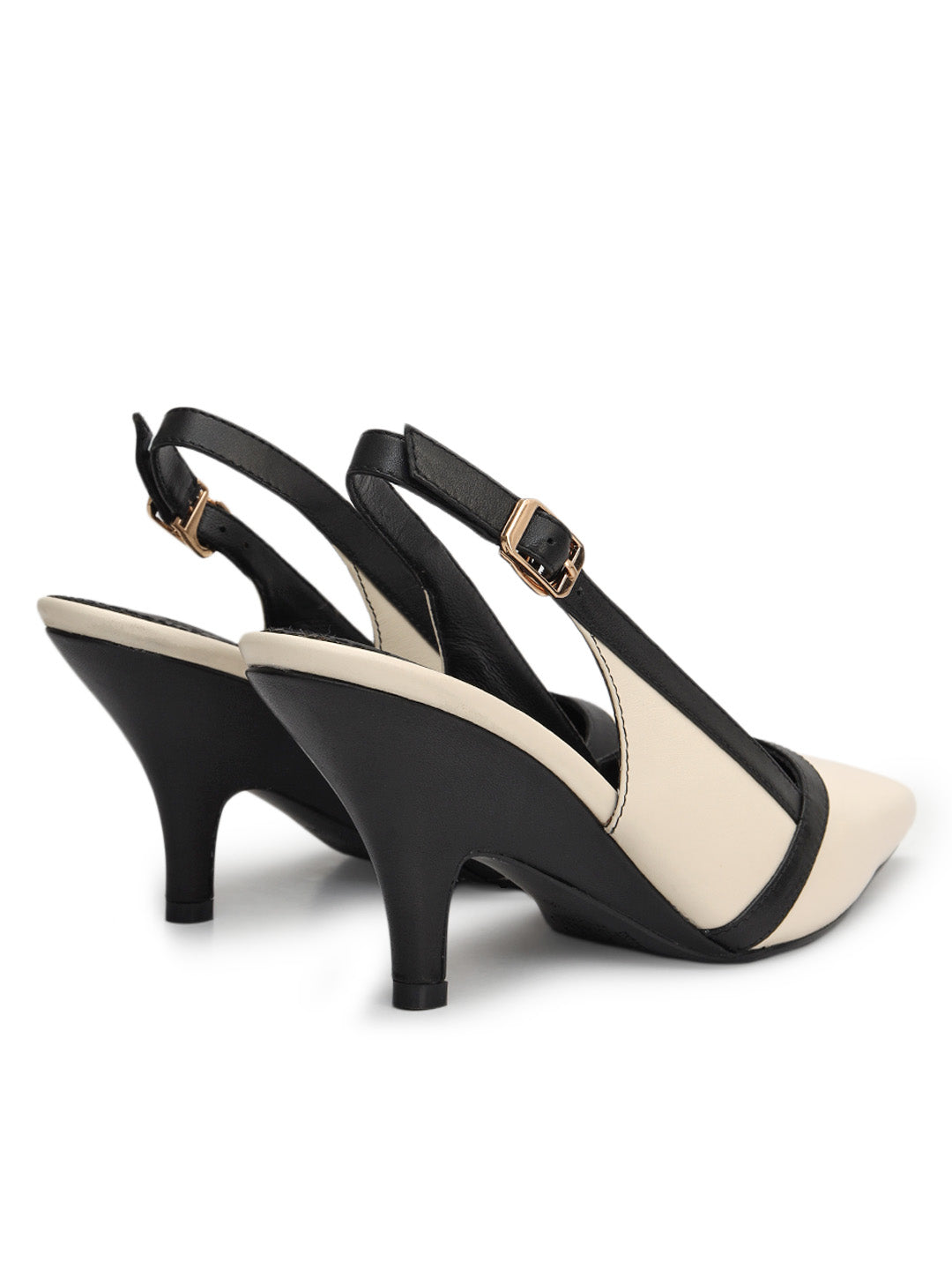 Step out in style with these white slingback heels, designed with a striking contrast trim for a modern touch. Perfectly balanced for formal occasions, they combine elegance with all-day comfort. Whether it’s a business meeting or a festive gathering, these heels ensure you stay confident and chic. A must-have addition to any wardrobe that values both style and ease.